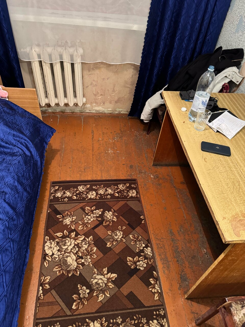 - В номерах:потрескавшийся потолок, оборванные обои, обшарпанные полы.