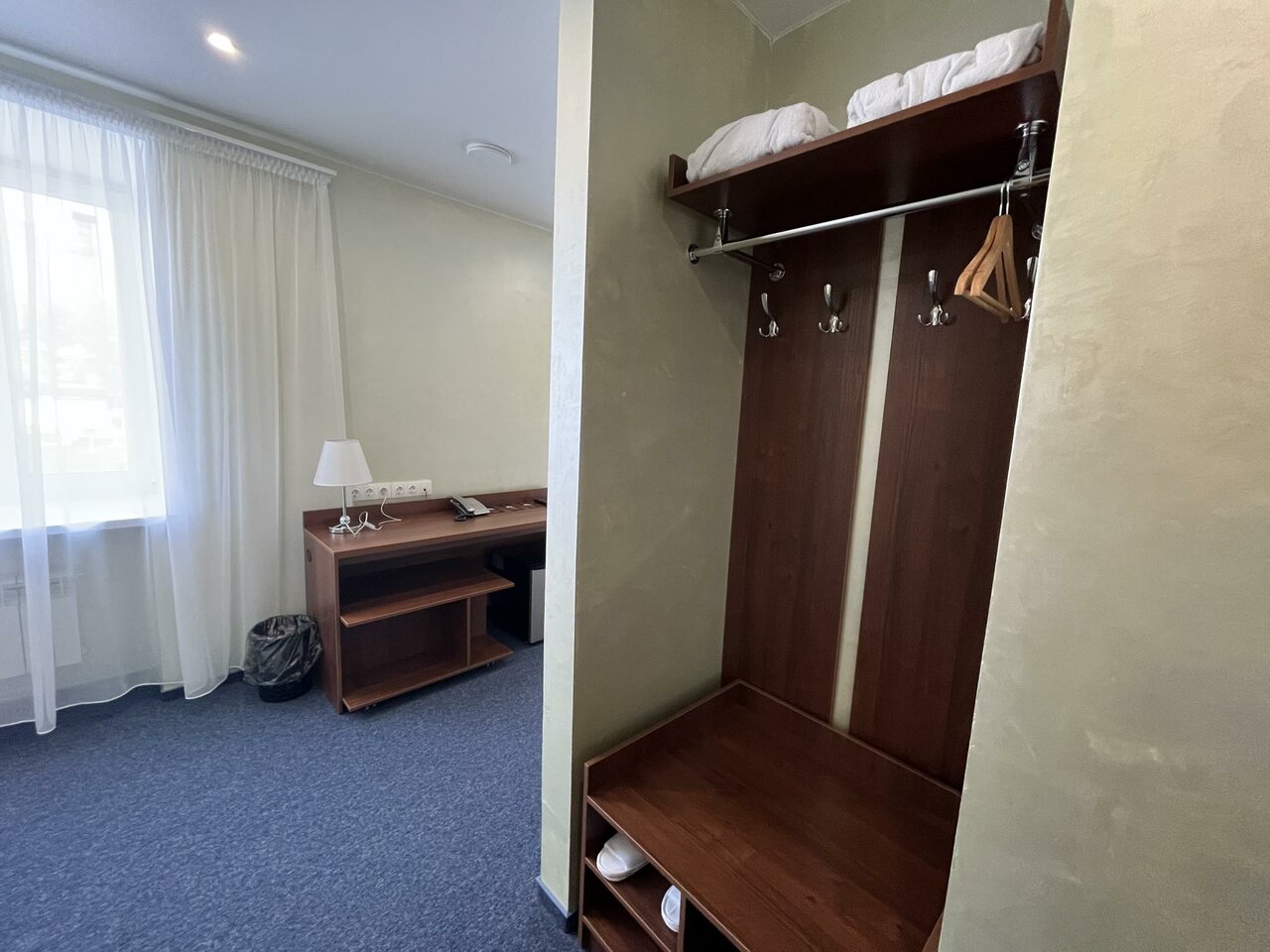 Отличная гостиница. На свои 3 звёзды тянет даже с +. У номере халаты, тапочки, предметы гигиены и т.д. единственно, чего не хватало это эл.чайник в номере.