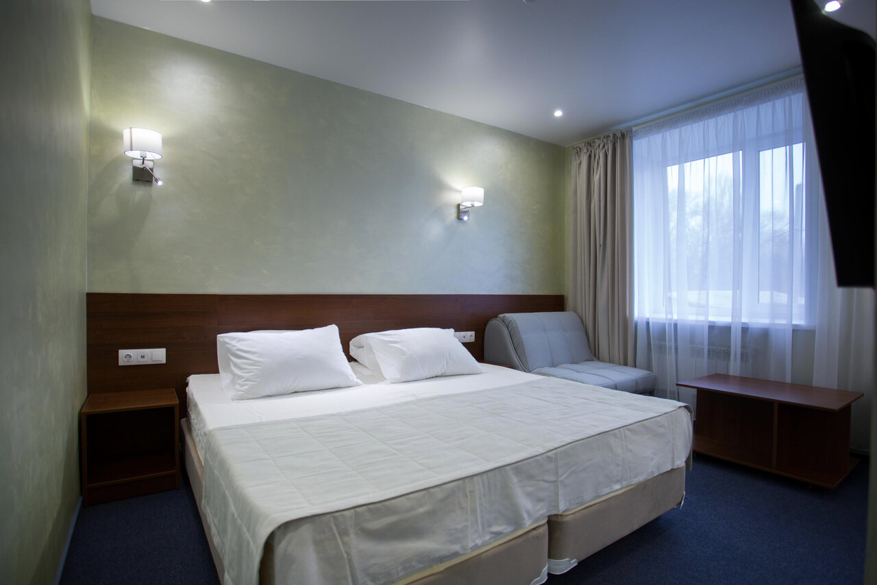 В номере: холодильник, кондиционер, интернет, фен, утюг, телевизор, халат, тапочки
