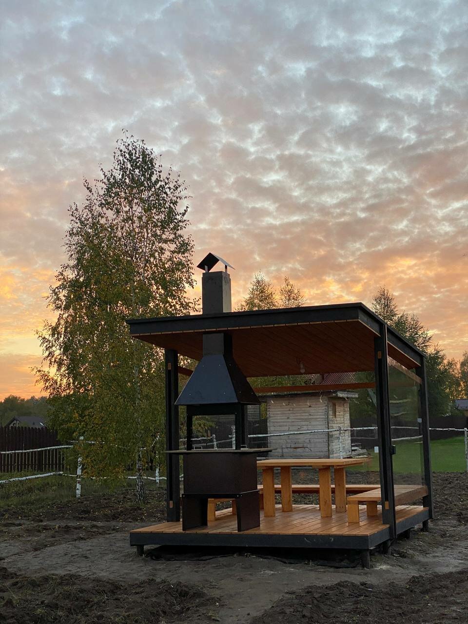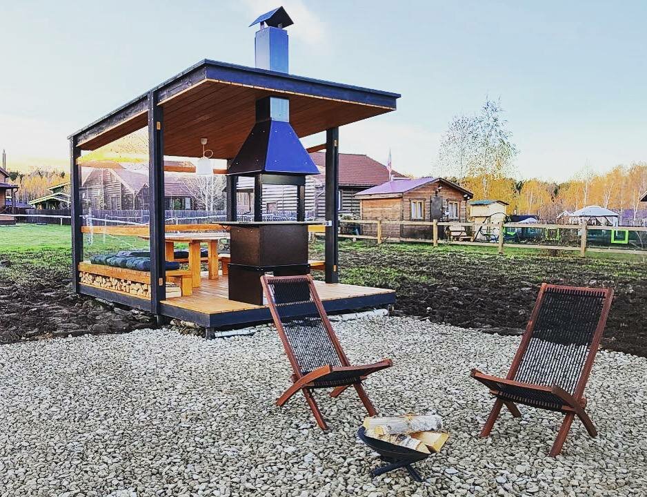 Мангальная зона сделана так, чтобы вам было комфортно в любую погоду находится у костра.