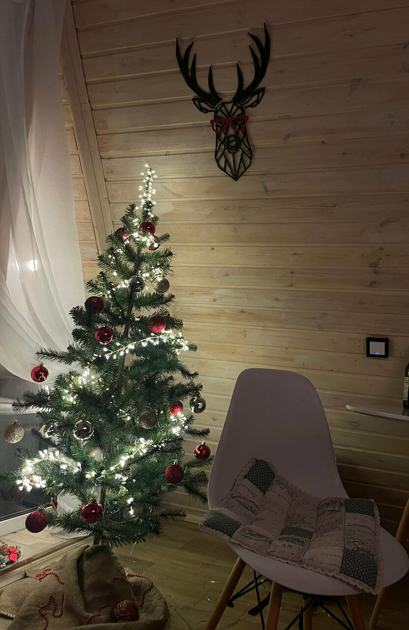 Очень милый, уютный и теплый домик. Вокруг замечательная природа. Красивый дизайн — видно все сделано с душой! Новогодние украшения просто прелесть. Самое-то отдохнуть компанией: сходить в баньку, погулять на природе, пожарить что-то на костре.