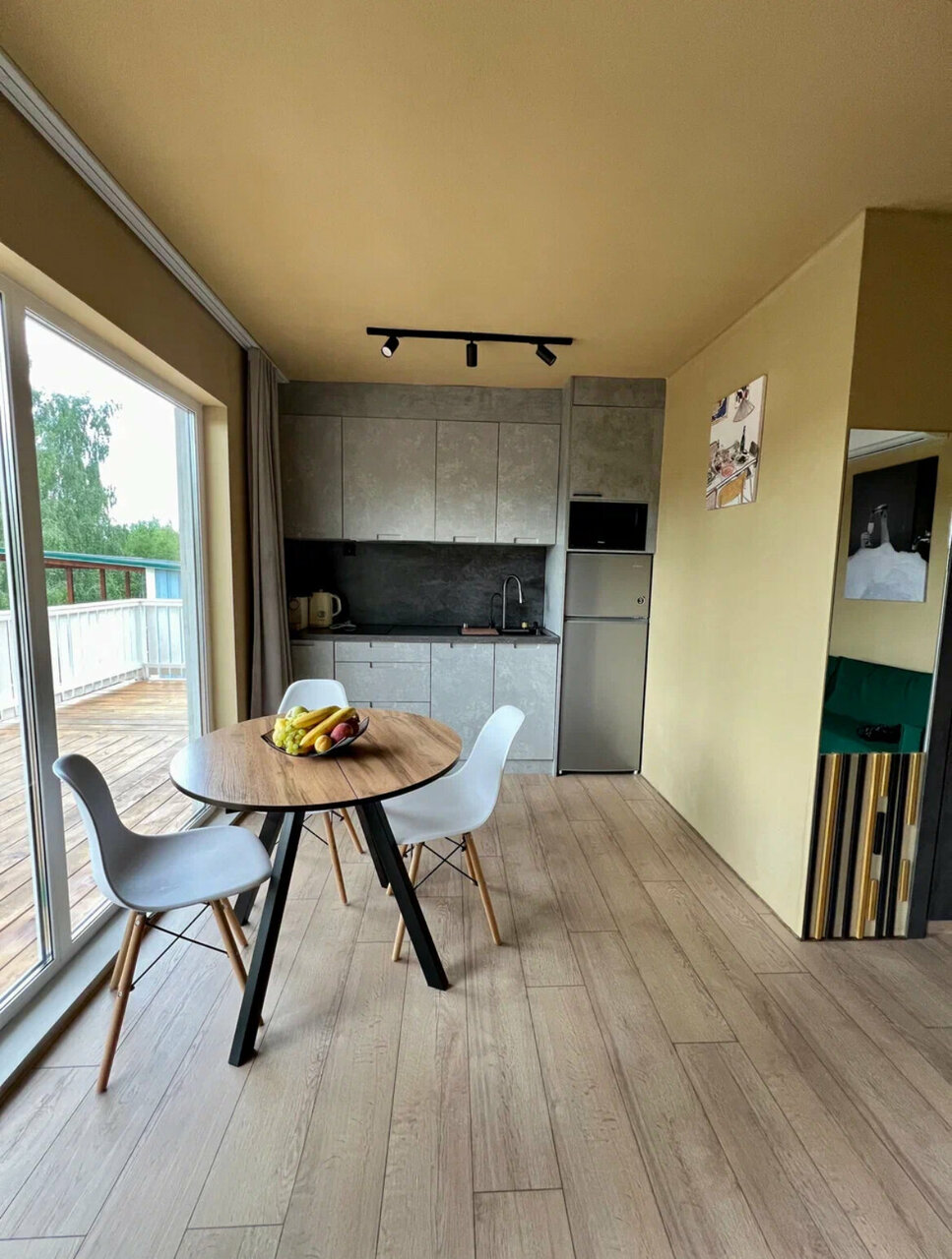 Мы провели выходные в замечательном гостевом комплексе, отмечали День Рождения дочери, всем очень понравилось! В домике стильный дизайн, удобная мебель, отдельный восторг это кухня (вся необходимая посуда, холодильник, небольшая плита). Можно бесплатно пользоваться сапами, ухоженная береговая территория, большой мостик (мы там проводили фотосессию)), верёвочные качельки на берегу, чему безумно были рады дети). А как красиво вечером, по всей территории светятся гирлянды, безумно красиво! Советую!!! Очень приятная хозяйка и сотрудники, кто там работает! Спасибо за прекрасные выходные!