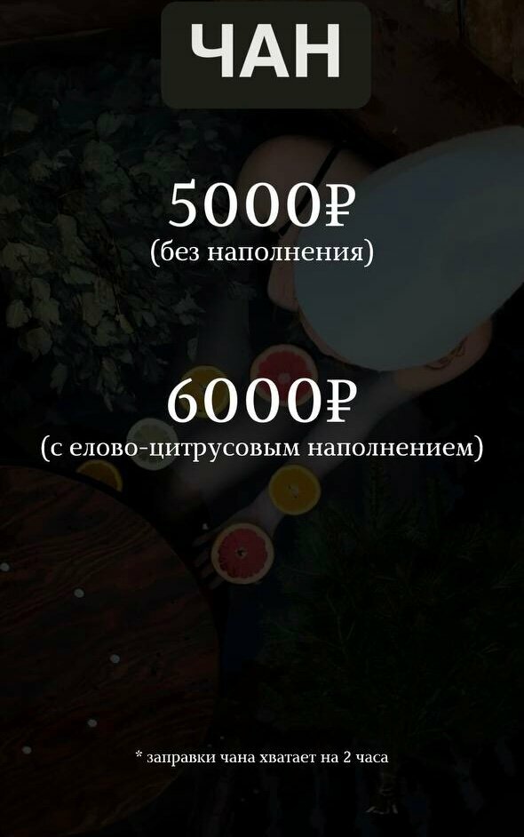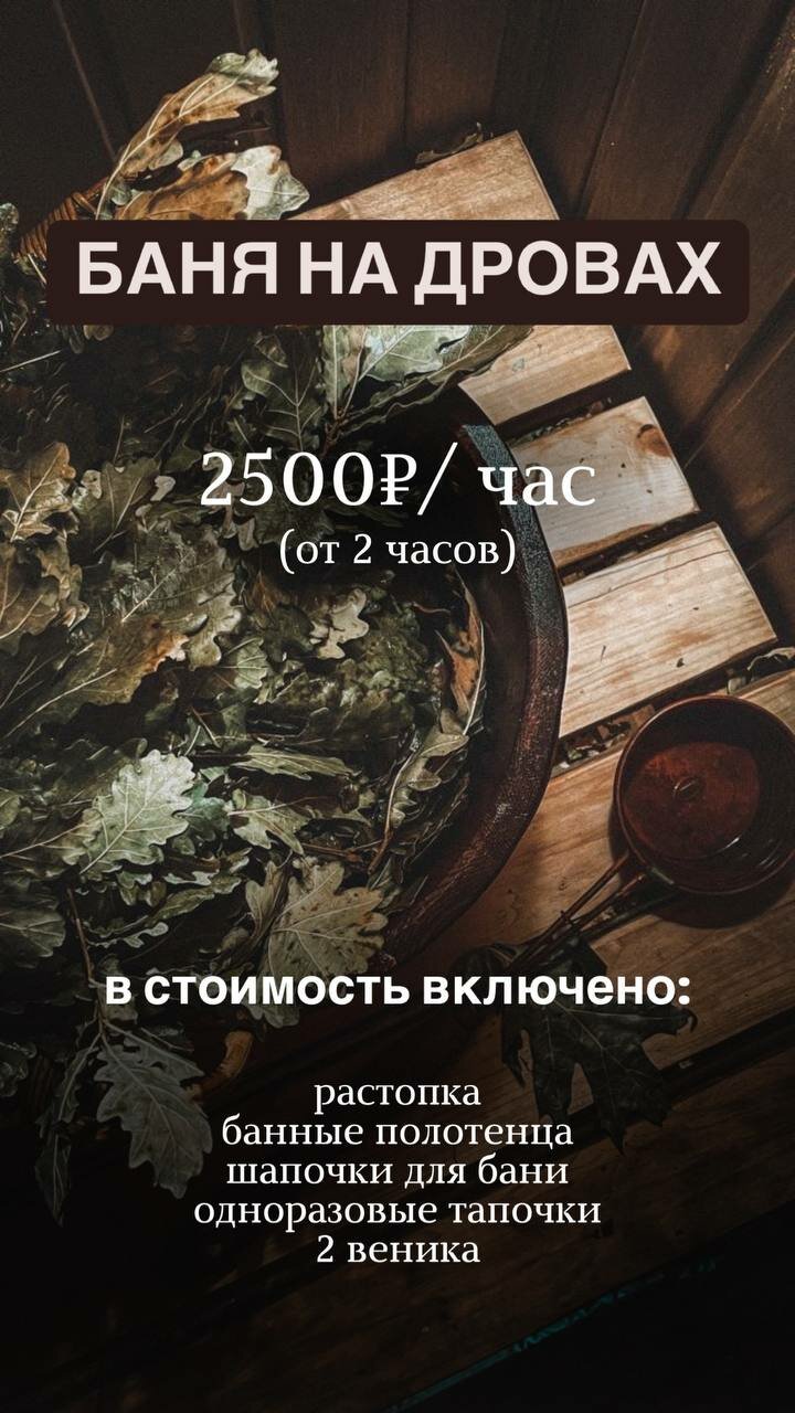 - Возможность заказать баню и чан.