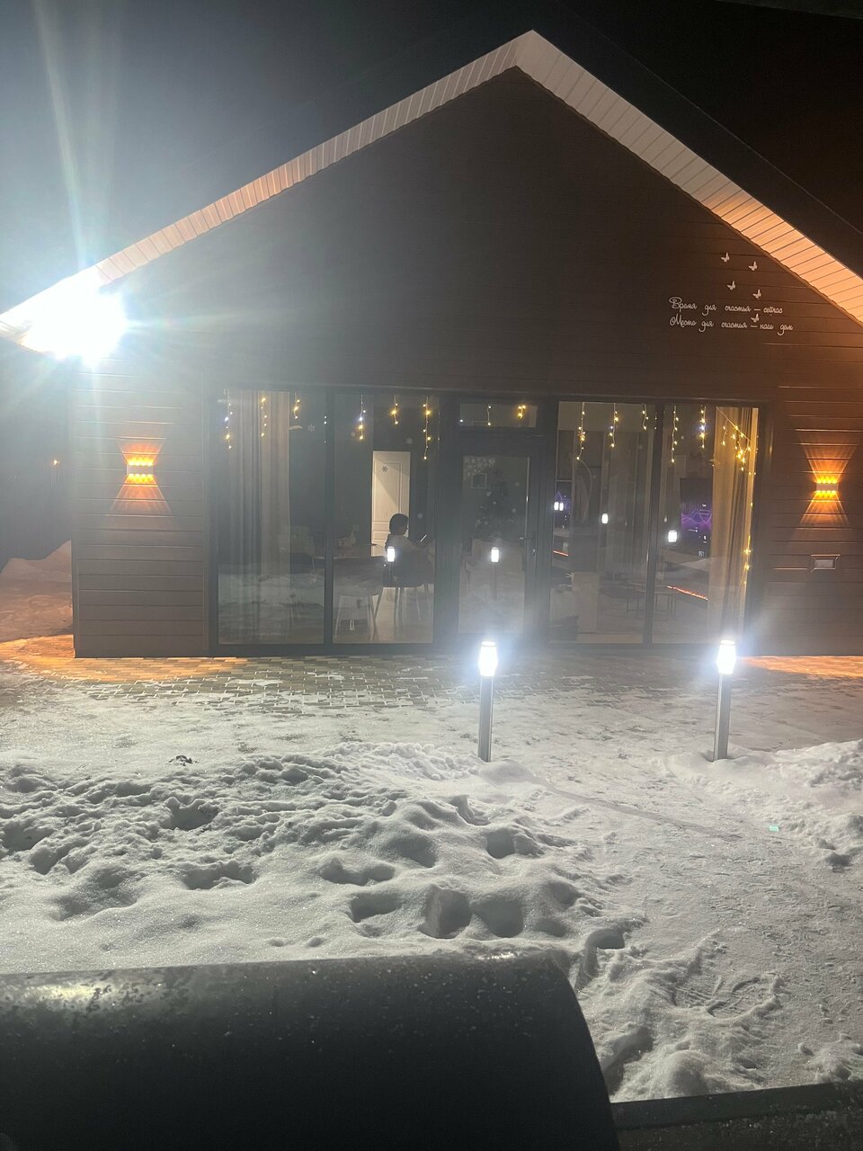 Брали домик на рождество. Цены конечно отличаются от обычных будней, но , что поделать) домик новый , теплые полы , внутри везде плитка , все чистенько. Антураж нового года был сохранен, елочка , гирлянды . Мангальная зона отличная . Чан заказали , прикольно, констраст с погодой — ощущения приятные. Хозяин чистил дорожки , предложил аромомасла для чана , убавил температуру полов по просьбе , был вежлив и обходителен. Залог вскоре после выселения был возращен . Советую данный домик для отдыха со своей второй половинкой .