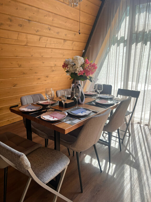 Отдыхали 31.03-03.04, это самый лучший отдых!! Сразу по приезду вас встречают администраторы очень милые девушки, все рассказывают, общение с администраторами положительное все что нужно можно написать на ватсаб очень быстро реагируют, теперь про дом, дом просто великолепный, все чисто, все принадлежности есть в доме,есть Алиса станция, телевизор с подписками, даже есть мини бар (за отдельную плату) так же территория очень уютная, за все дни нам не кто не мешал, так же есть озеро где вы можете бесплатно покататься на лодке, катамаране,отдых удался, все шикарно! Огромное спасибо Марии за общение! Очень внимательная, все расспросила при выезде какие пожелание и как отдохнули! Персонал очень внимательный и вежливый! Приедем еще не раз к вам!