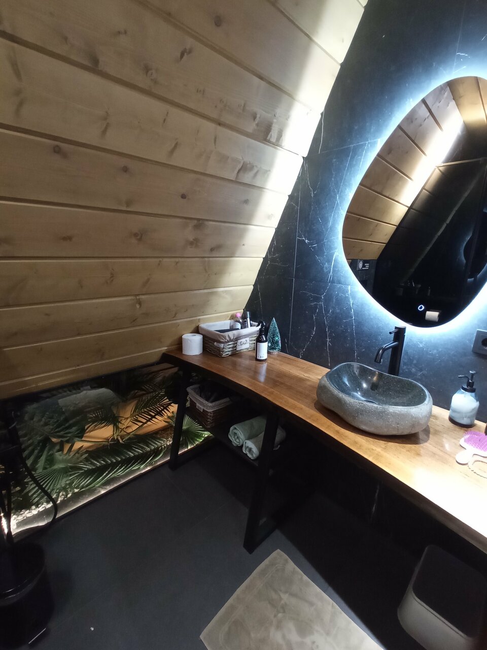 Добрый день! Хотел бы оставить отзыв о данном месте! Место безумно красивое, добираться очень удобно! Персонал безумно дружелюбный и позитивный, Илине спасибо за прекрасное настроение при встрече и на протяжении всего отдыха) Интерьер выдержан в стиле лофт, очень уютно и комфортно! Джакузи удобно расположен рядом с домиком! Всем советую посещать данное место)