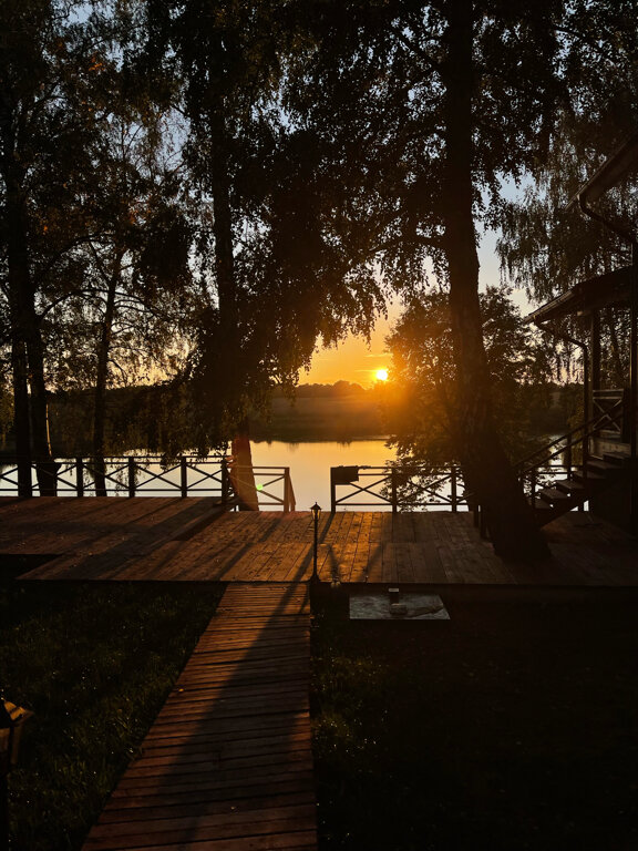 Впечатления — огонь! Место в точности как на фото, собственный пирс, отличный дом, удобные кровати, веранда — сказка Все очень чисто, есть места для парковки, красивые фонарики вдоль тропинки к дому. Людмила очень приятная, день рождения прошел на ура