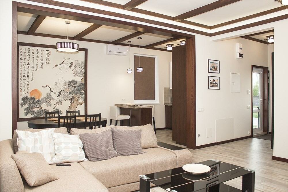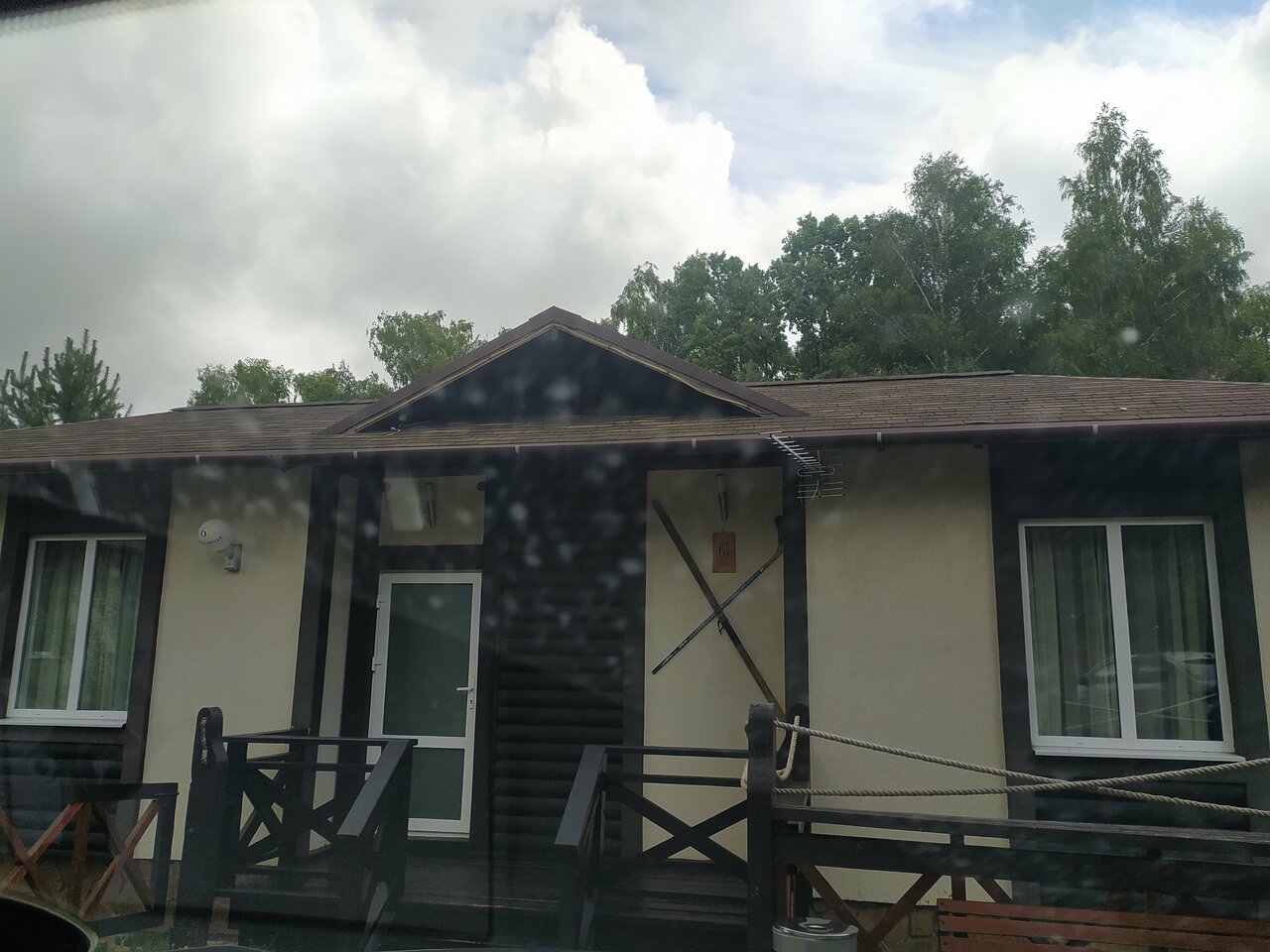 В домике, кухня сауна и купель, отличный вид, рядом зоопарк и конный клуб.