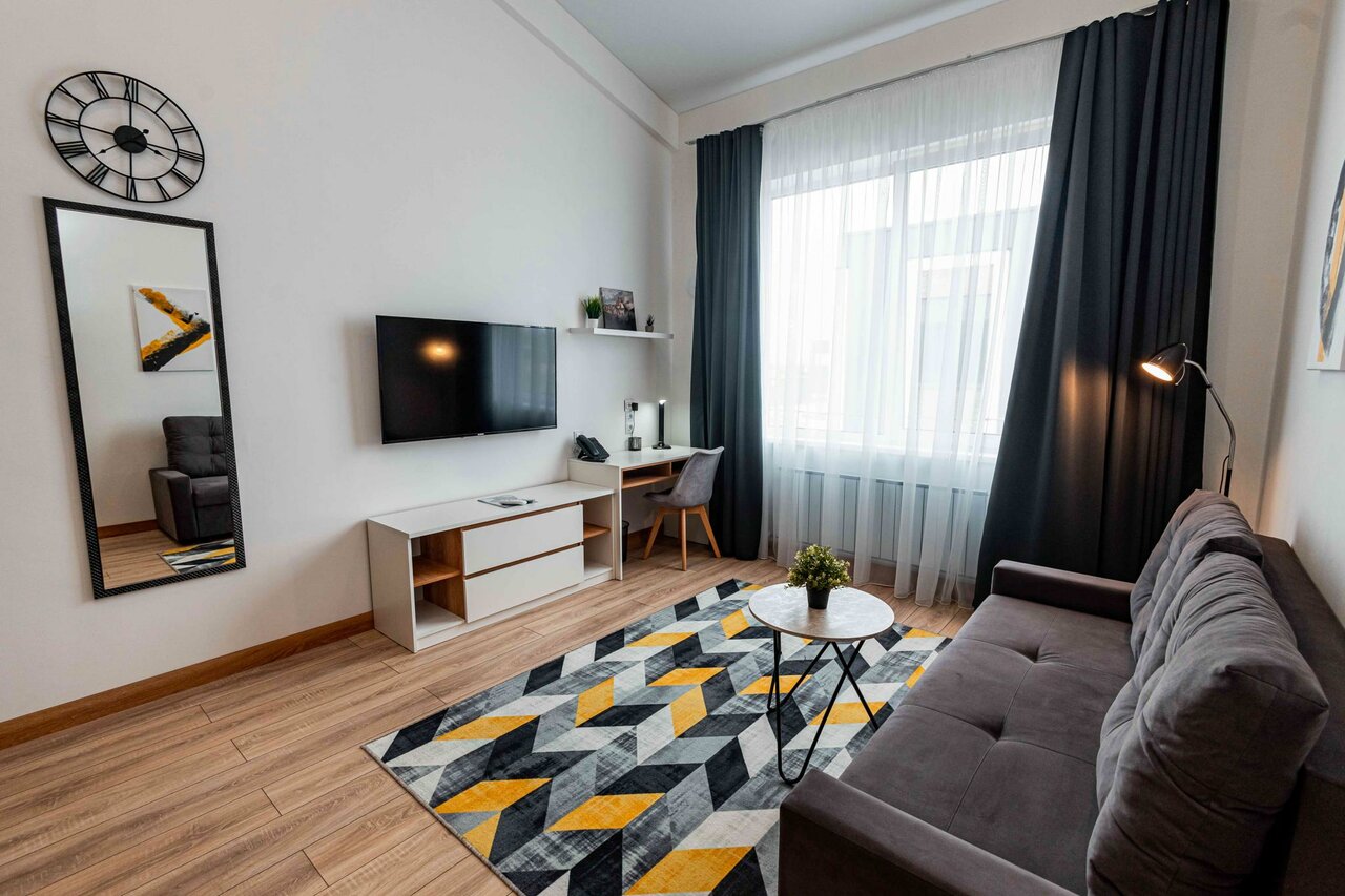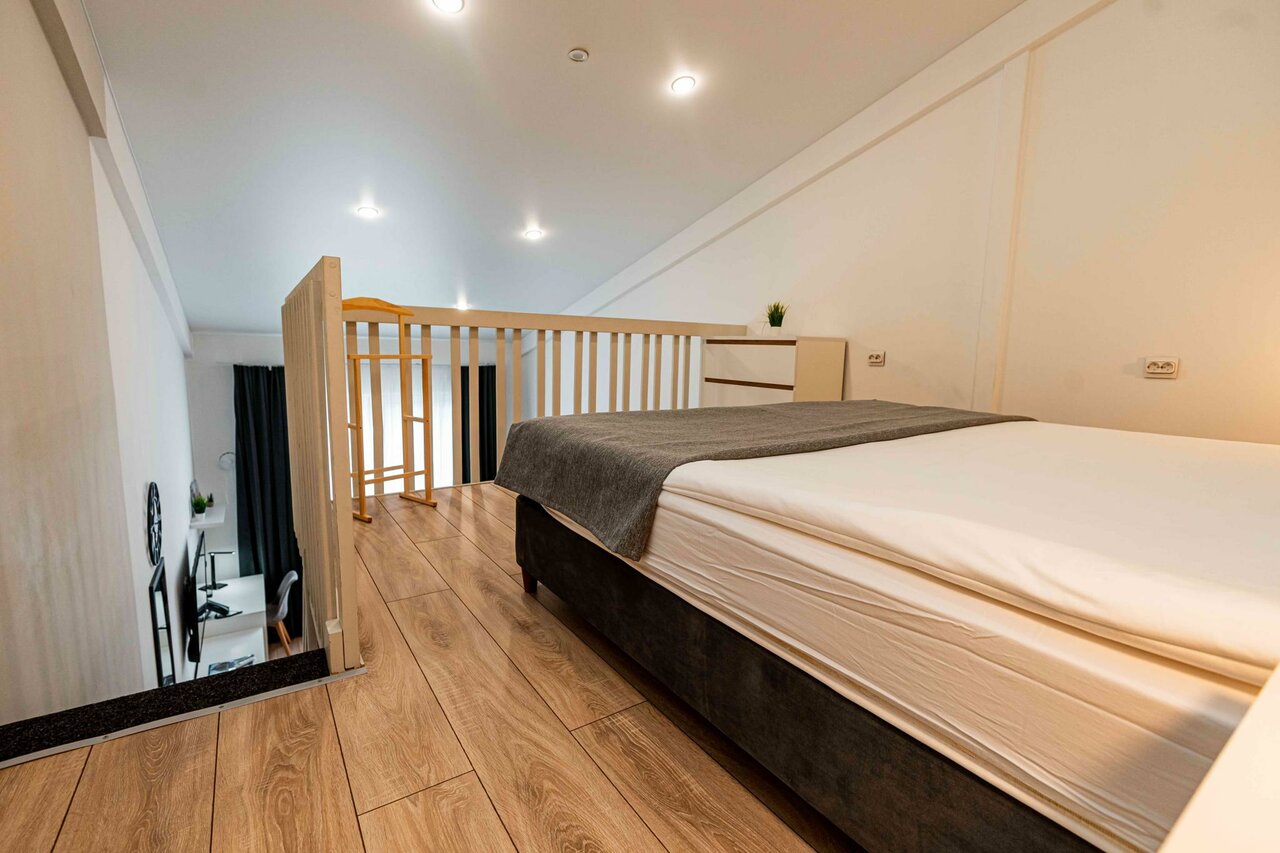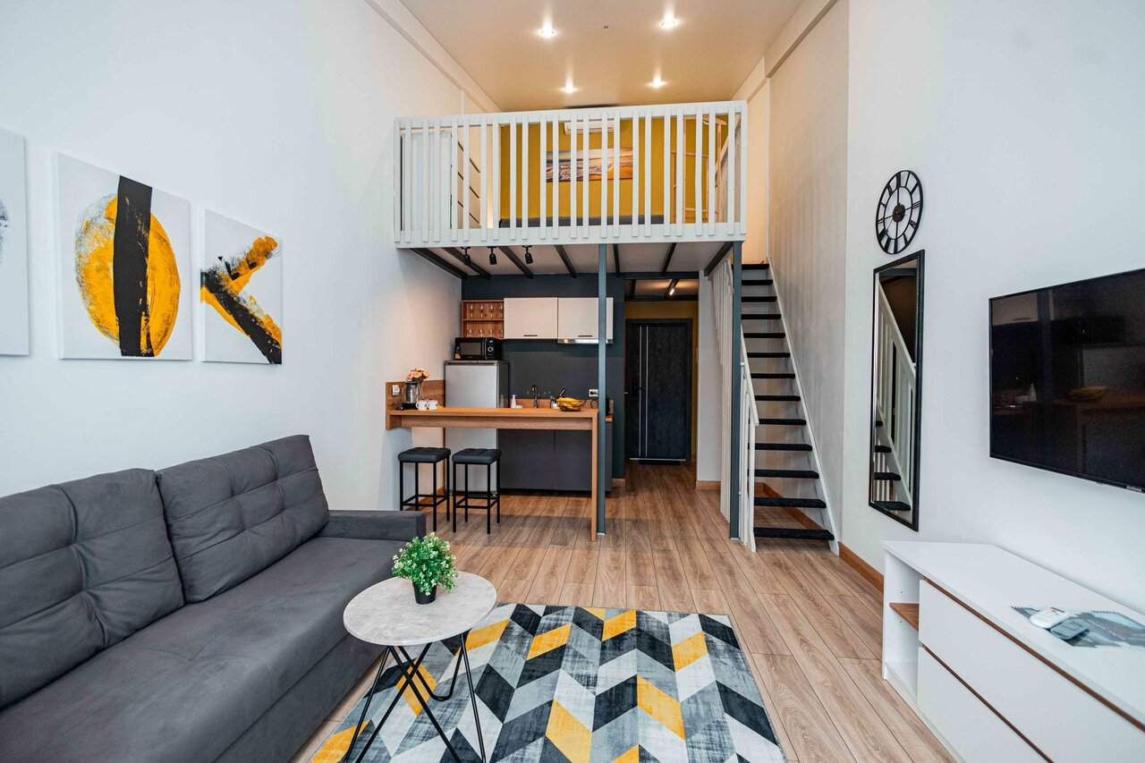 Хороший отель. Необычные апартаменты с кроватью на втором уровне. В номере есть кухня и стиральная машина, смарт телевизор. Приятная атмосфера.
