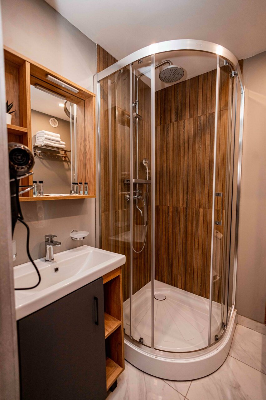 - Наличие стиральной машины и смарт-телевизора в номерах.
