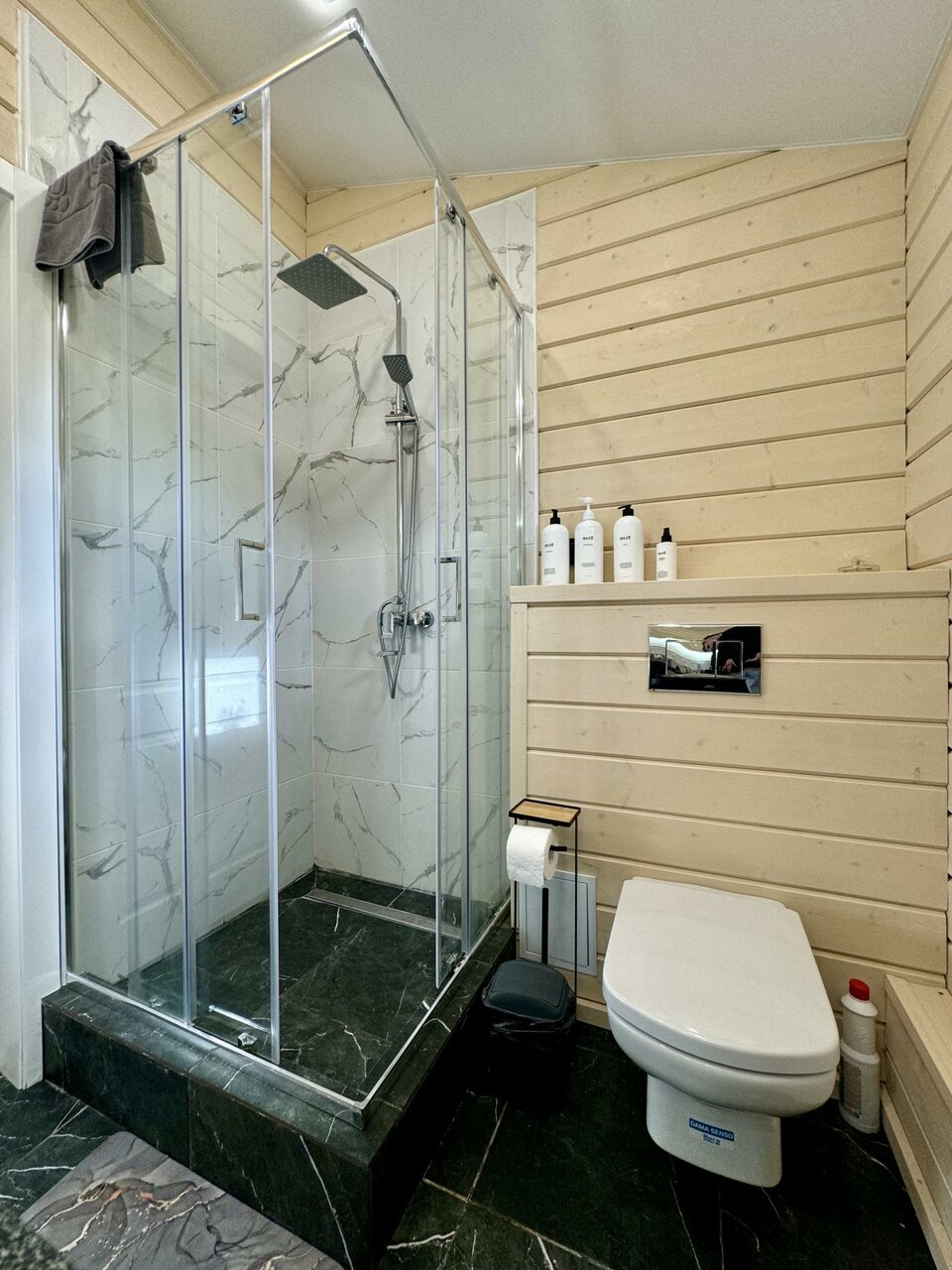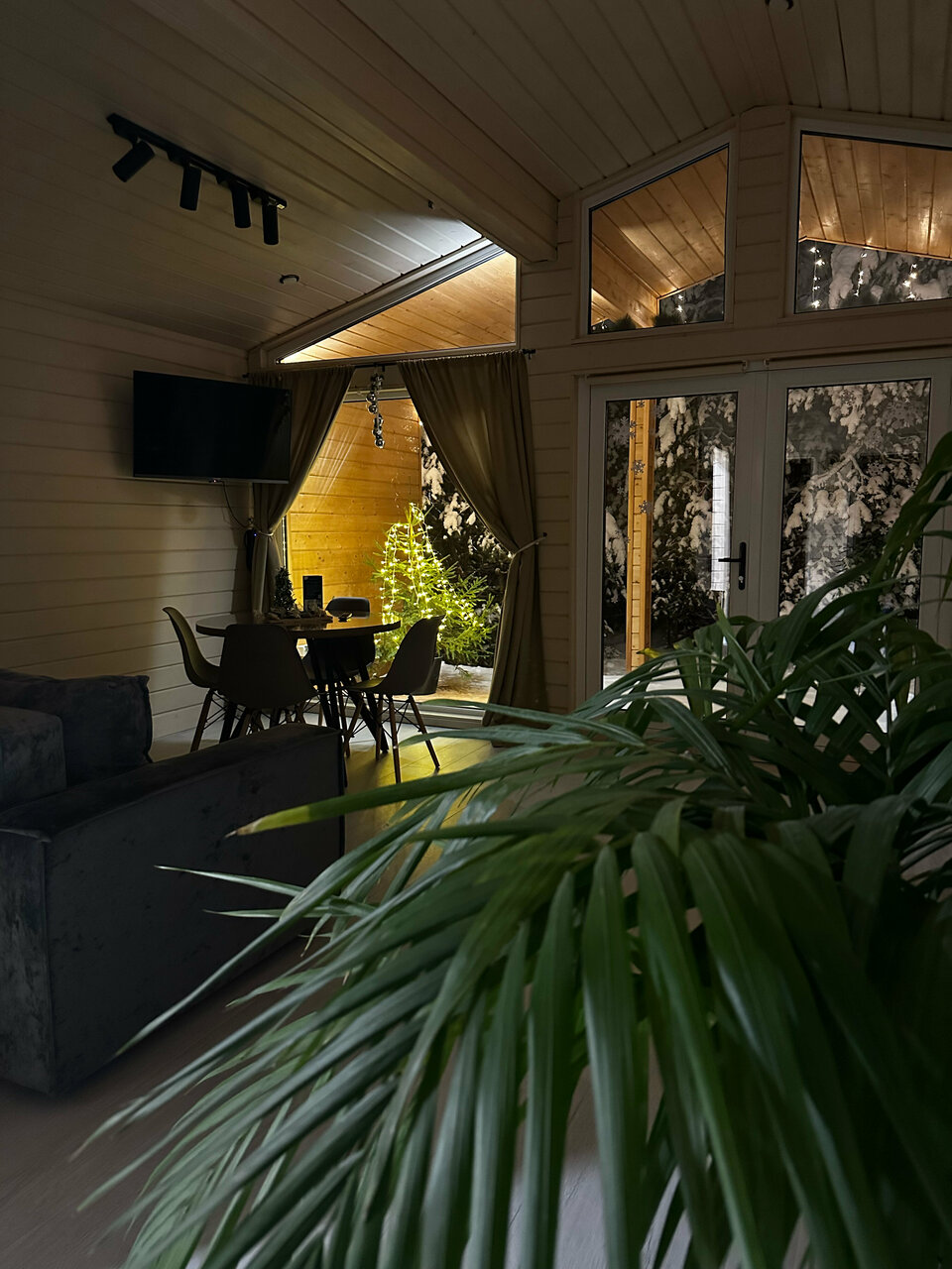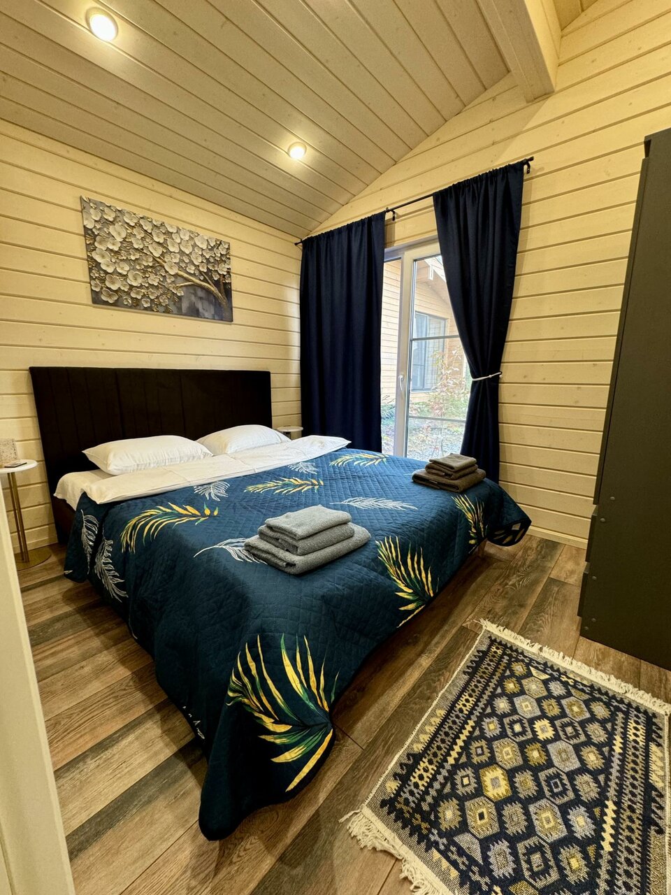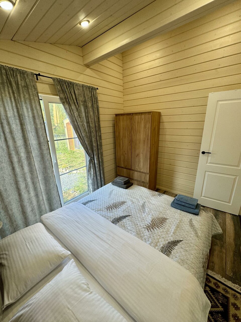 Все очень понравилось ! Чистенько, аккуратно, со вкусом ! Панорамные окна в пол с выходом на террасу, где стоит столик и можно кушать на улице с видом на лес , рядом стоит мангал ! Можно прогуляться по лесной тропинке !