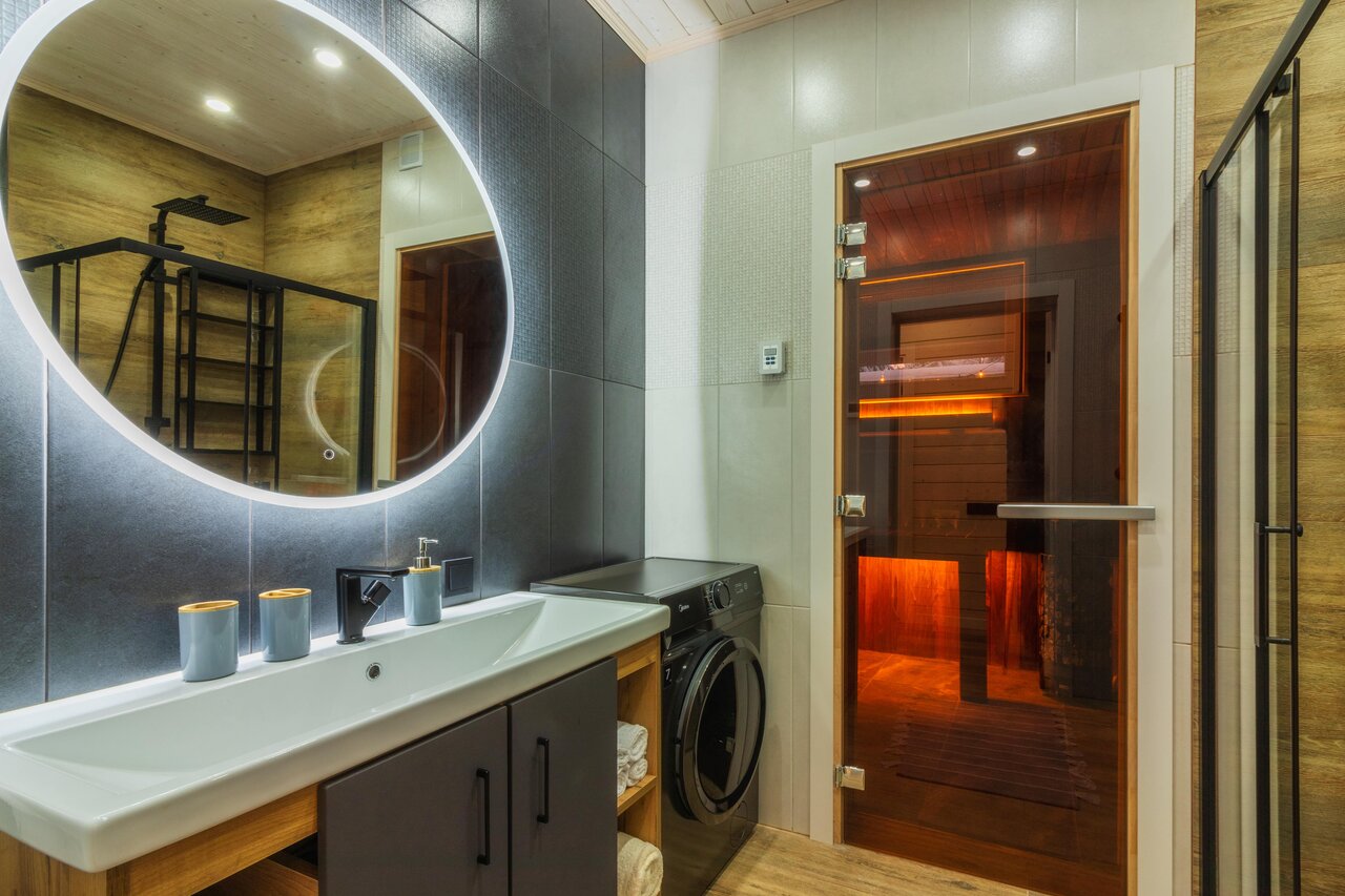 - Полная оснащенность (кухонная утварь, техника, сауна, подогрев полов).