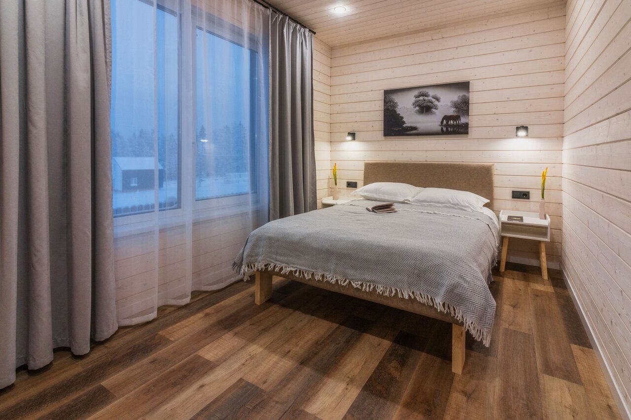 Удобства: — Номера с кухонным уголком, холодильником, чайником, микроволновкой, плитой, посудой, феном, бесплатным Wi-Fi. — Сауна, терраса, бесплатная парковка, стиральная машина, уборка. — Детские кровати (0–10 лет) бесплатно, детский санузел. — Кинг-сайз кровать, красивый вид из окна, возможность проведения вечеринок, площадка для пикника.