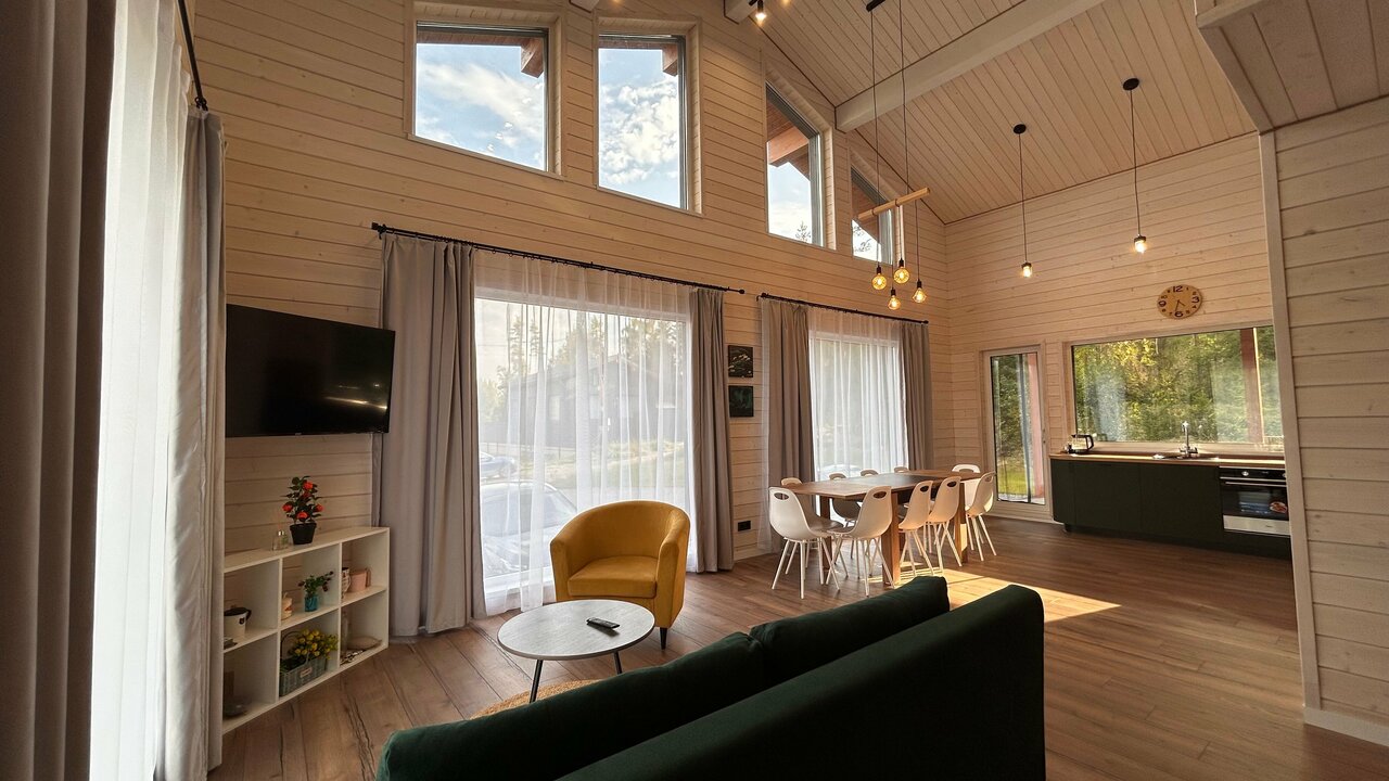 Прекрасный дом с прекрасными хозяевами) Все новое, чистое, очень уютный интерьер и отличная локация, все достаточно рядом и горнолыжка и магазины. Очень понравилось что дом находится около леса и отдалено от соседей. В доме есть все, особенно порадовала вся кухонная утварь и ее количество, ничего из взятого с собой не пригодилось. Отдельное спасибо Дарье за доброжелательность и отзывчивость ))