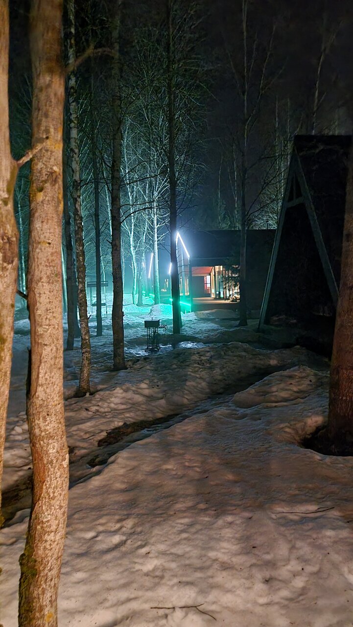 Отличное место. Снимали домик на неделю. Всё было превосходно. Если не считать постоянную борьбу со сплит системой (администраторы не могли настроить несколько дней). Парилка очень понравилась, стеклянная стена делала её очень светлой.