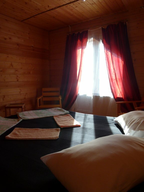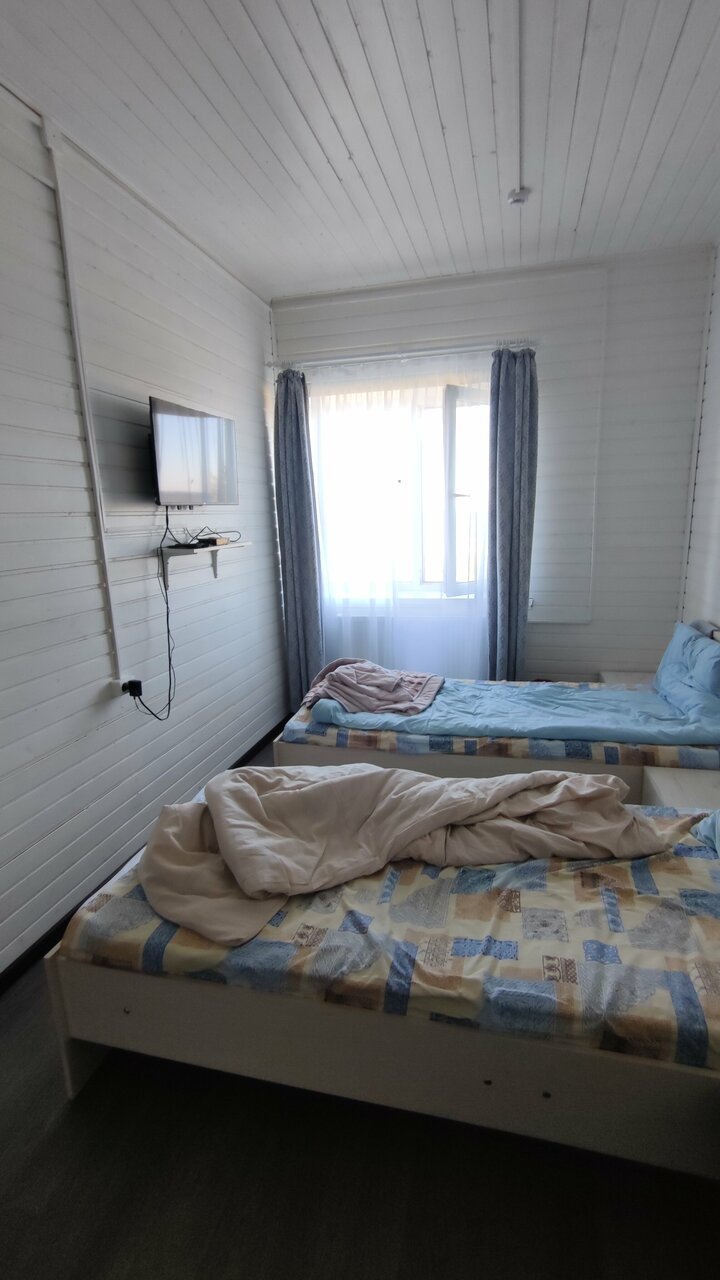 В номере было чисто, кровати удобные и мягкие. А рядом с номером располагалась кухня в которой можно было покушать, в самом номере стол и один стул поэтому втроём кушать одновременно в трёхместном номере, не получилось. Пришлось ждать пока поужинают другие постояльцы, это были три женщины и только после этого удалось воспользоваться кухней. На кухне есть с двухкомфорочная плита можно приготовить что-то в местной посуде кастрюли и сковородки на кухне имеются. Также на кухне была микроволновка и чайник. Чайник был приятным бонусом потому что последних трёх гостиницах были кулеры которые нагревают вот до низкой температуры и в районе 70 а при этой температуре чай плохо заваривается и еда быстрого приготовления тоже не очень хорошо завариваеться. Из трёх розеток около наших трех кроватей, одна не работала и поэтому пришлось, чтобы зарядить телефон и он был рядом со мной попросить удлинитель. Трёхместный номер обошёлся в 2100, так что соотношение цена-качество хорошее.