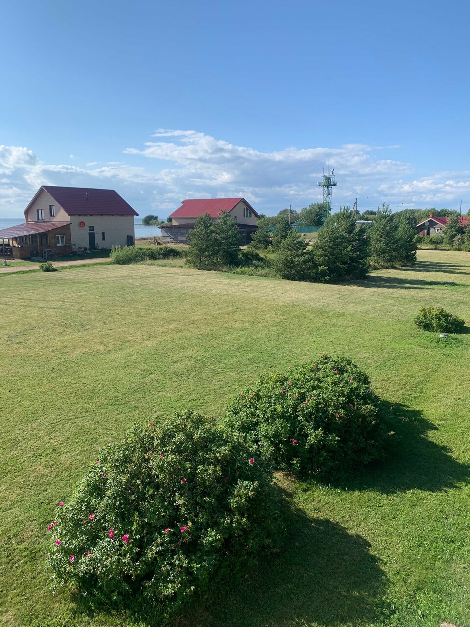 Отличное место для отдыха и рыбалки! От Санкт-Петербурга приблизительно 2ч30 мин. Коттеджи находятся на берегу Чудского озера. Выход на большую воду по речке, на которой есть удобные пирсы. Домики все уютные и удобные, есть всё что нужно — с/у на каждом этаже, ТВ, кухня с посудой (холодильник, микроволновка, холодильник, плита). На территории много спортивных площадок и детских городков. Баня шикарная, топится дровами(веники рекомендую купить по дороге). Рядом город Гдов, где есть все нужные магазины.