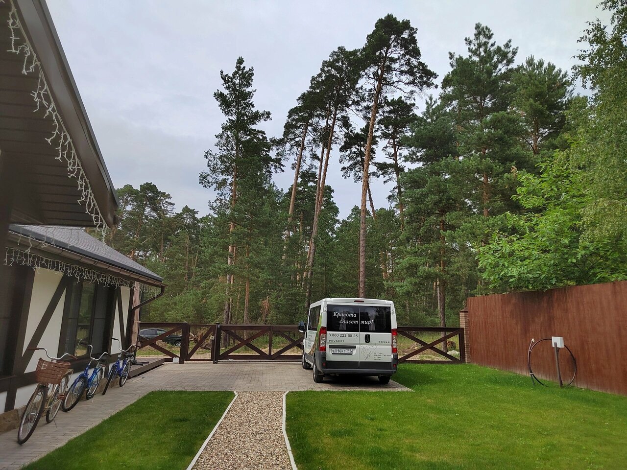 - Красивое расположение (сосновый лес, природа).