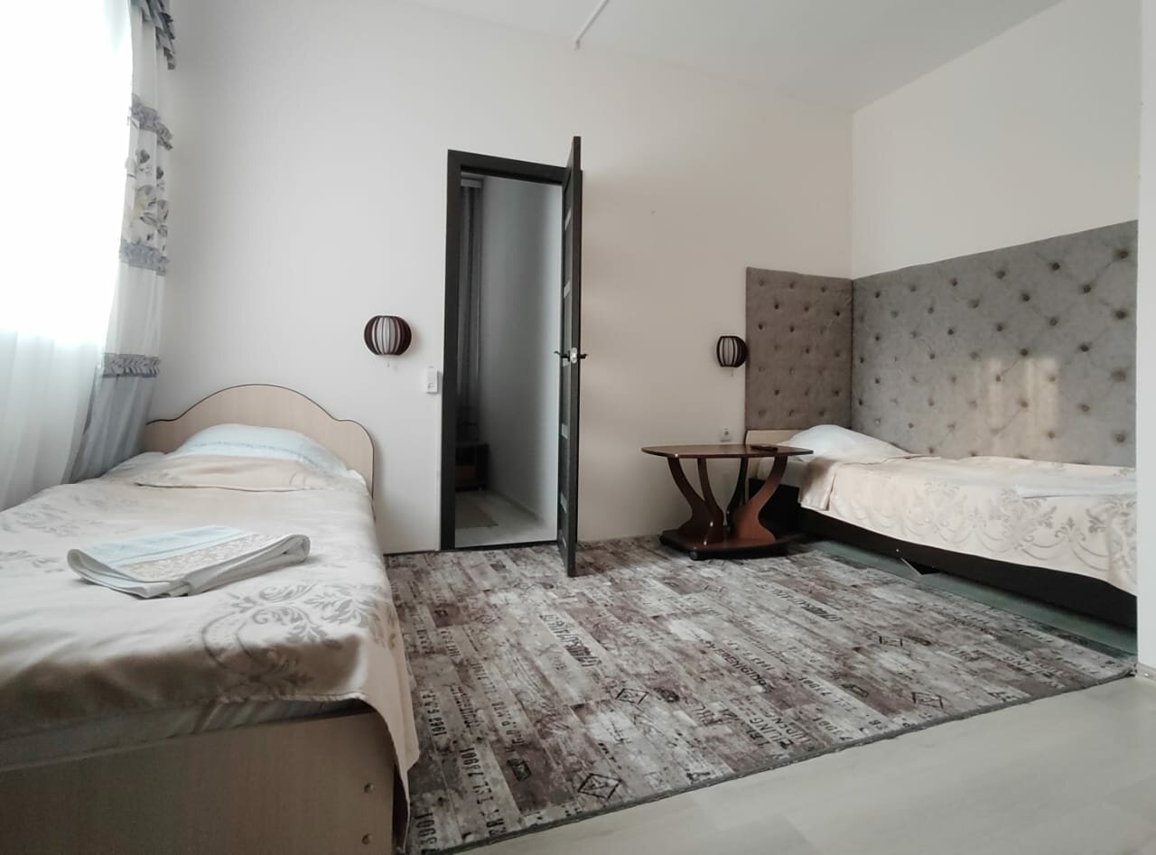 Перед тем как приехать, звонила, чтобы уточнить есть ли номер. Нужен был номер с двухспальной кроватью. Когда приехали, то обещанного номера не оказалось. Туалет и душ не в номере, а совместный с другими номерами. Это очень расстроило. Так как были уставшие пришлось остаться.