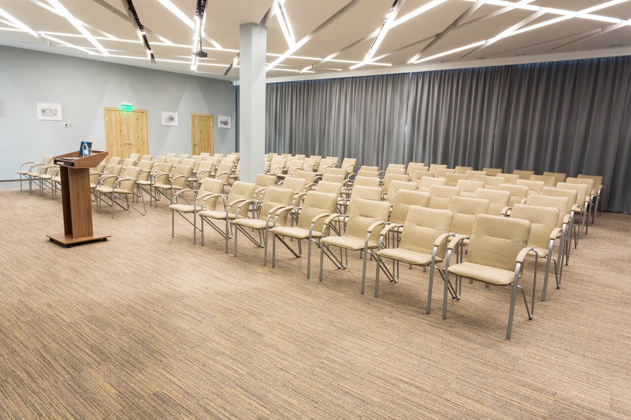 Малый конференц-зал площадью 70 кв. м. вместимостью 60 человек укомплектован новейшим оборудованием, подходит для проведения бизнес-встреч, организации mice-мероприятий. Организация фуршетов, кофе-брейков.