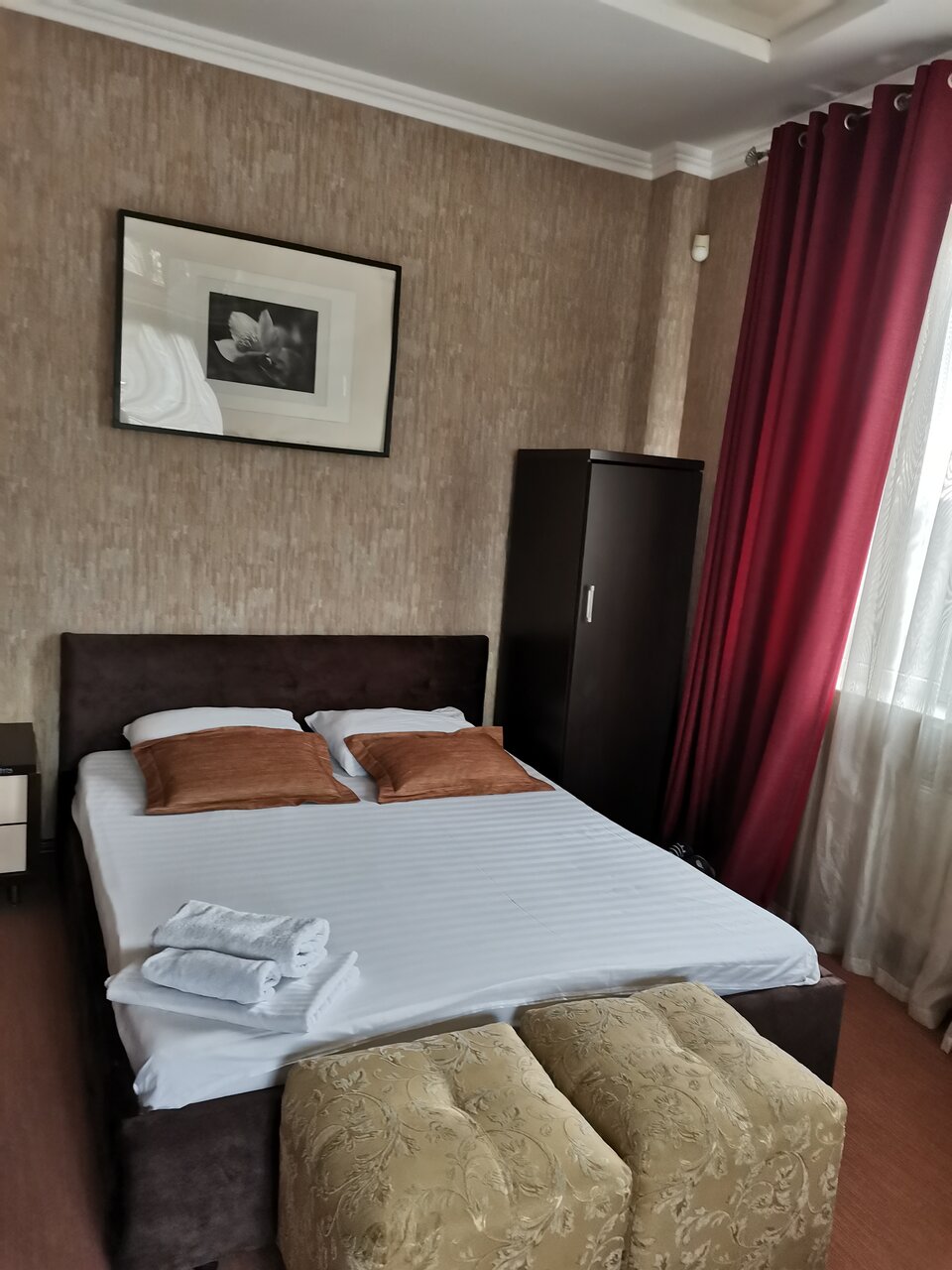 Хорошие номера. Прайс вполне себе. Ценник демократичный. В номерах есть полотенца и халаты. Парковка правда неудобная. Еле развернулся.