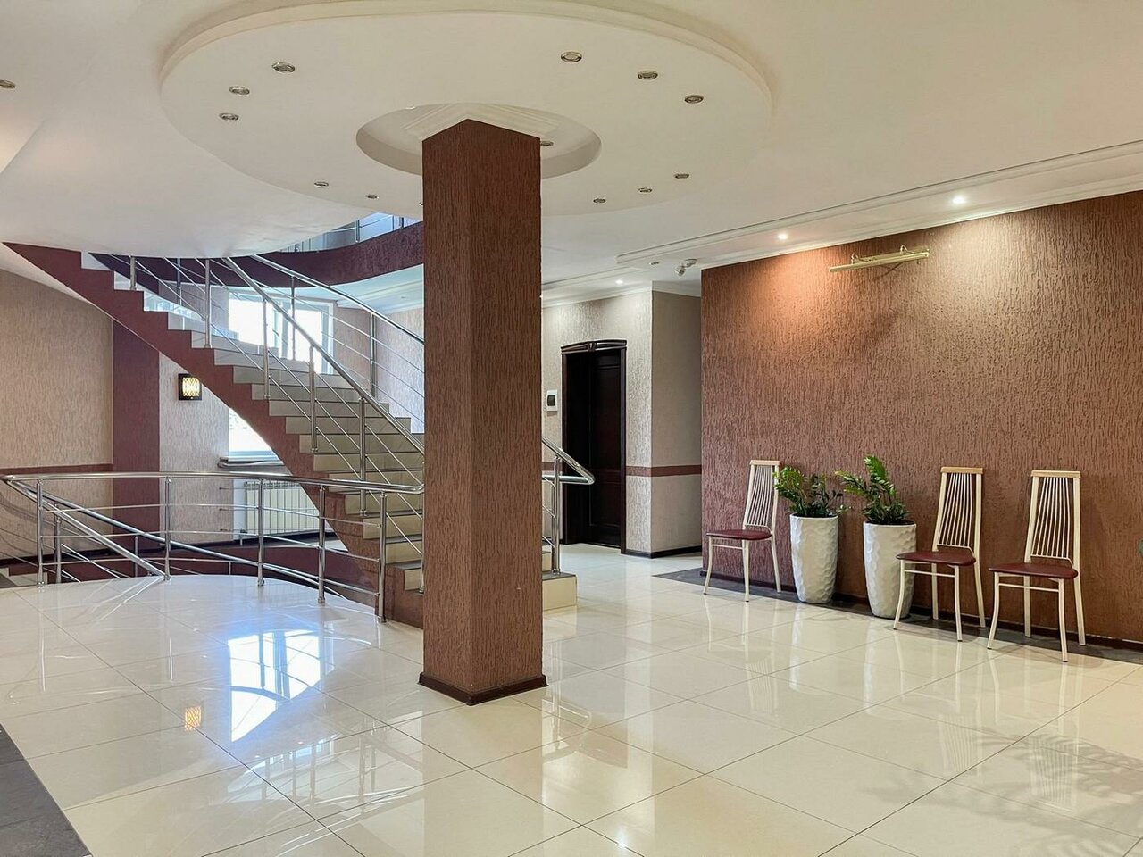 Полулюкс площадью 35 кв.м с видом на город.Подходит для размещения 4 человек. Имеет спальню с приятным интерьером.В номере:1 двуспальная кровать и 1 диван двуспальный.Имеется телевизор, кондиционер, отопление, шкаф, вешалка, зеркало, комод, пр...