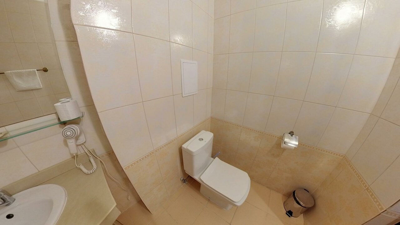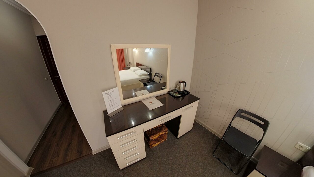 Одноместный стандартный номер площадью 20 кв.м с видом на город.Подходит для размещения 1 человек. Имеет спальню с приятным интерьером.В номере: 1 двуспальная кровать.Имеется телевизор, кондиционер, отопление, шкаф, вешалка, зеркало, комод, п...