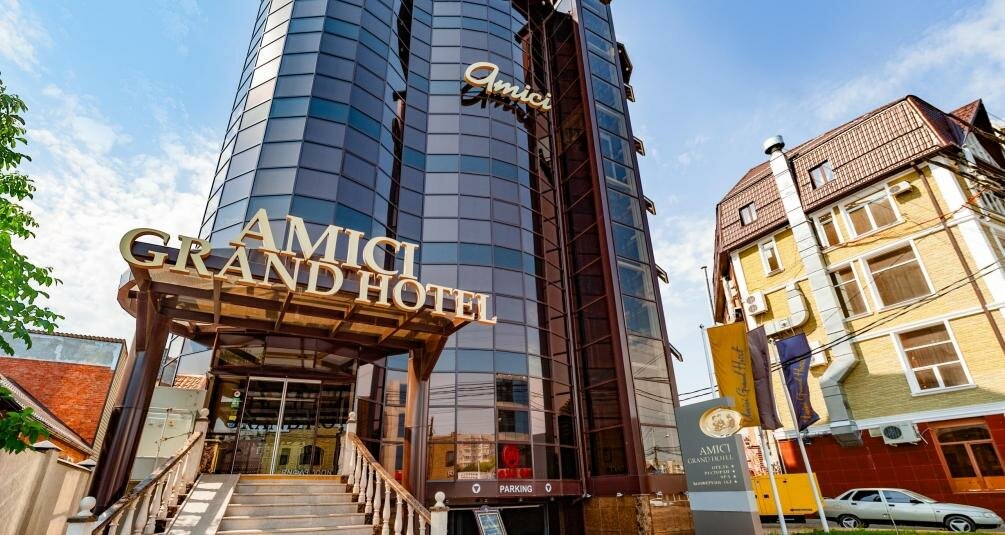 Amici Grand Hotel — четырёхзвёздочный отельный комплекс в Краснодаре, расположенный по адресу: ул. Красных Партизан, 112. Гостиница работает круглосуточно и предлагает комфортабельные номера с кондиционером, Wi-Fi, мини-баром и санузлом.