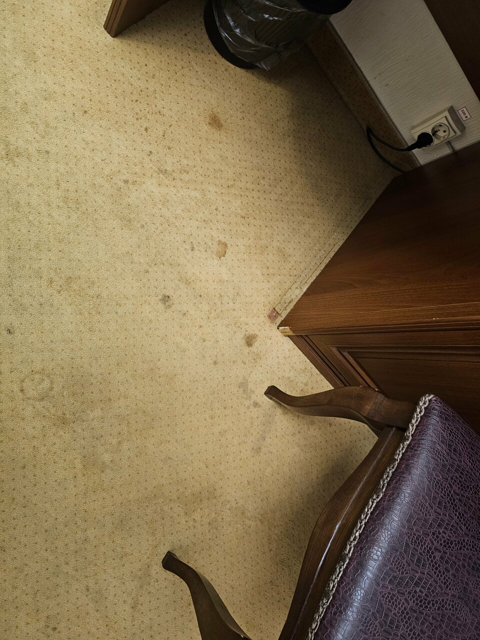 - Грязное или заляпанное ковровое покрытие в номерах.