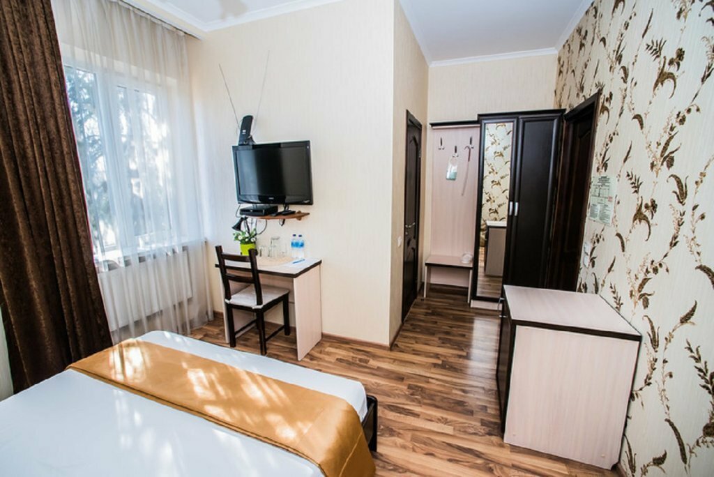 Доброе утро. Скажу сразу цена не соответствует. Сегодня проснулась в ‘Арт отель’ и поняла, что не отставить отзыв не могу. Единственный плюс и то не самый главный это расположение отеля. 1. Комнаты маленькие для двоих это только зашел в номер и упал сразу на кровать. 2. Ванная комната: разовое мыло, паста, щетка, гель для душа и т.д. отсуствуют. 3. Про унитаз и душевую кабину даже писать не буду, просто страшно было садиться и вставать. Все шатко. 4. Открыв окно я сразу поняла что не усну. Все окна номеров выходят во двор, соответственно Вы услышите не пение птиц, а работу кондиционеров. А посему, если Вы отматали на авто 1 000 км и захотите остановиться выспаться, у Вас это не получиться. За эти же деньги можно выбрать более достойный отель.