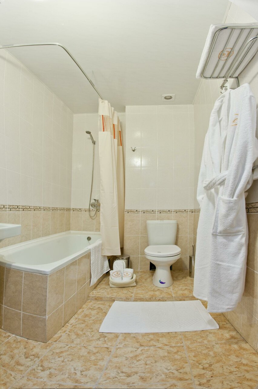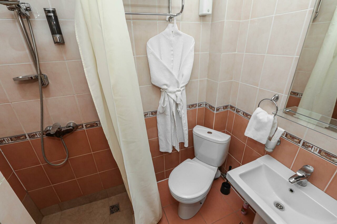 Особенности: ◉ Звукоизоляция, фен, халаты, тапочки ◉ Ускоренная регистрация (заезд с 14:00, выезд до 12:00) ◉ Бесплатный интернет на всей территории