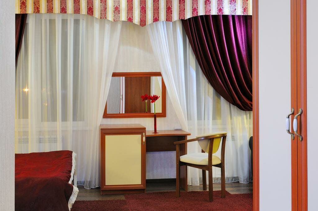 Гостиница прекрасно подходит для ночлега и сна. Номер просторный, кровать удобная, холодильник, телевизор, лифт. Из недостатков: включённый завтрак, как впрочем и то, что предлагается за дополнительную.плату (150) неимоверно скуден — или блинчики, или оладьи, или каша; когда соседи входят в номер, то кажется, что хлопали твоей дверью; санузел чистый, исправный, но очень уставший