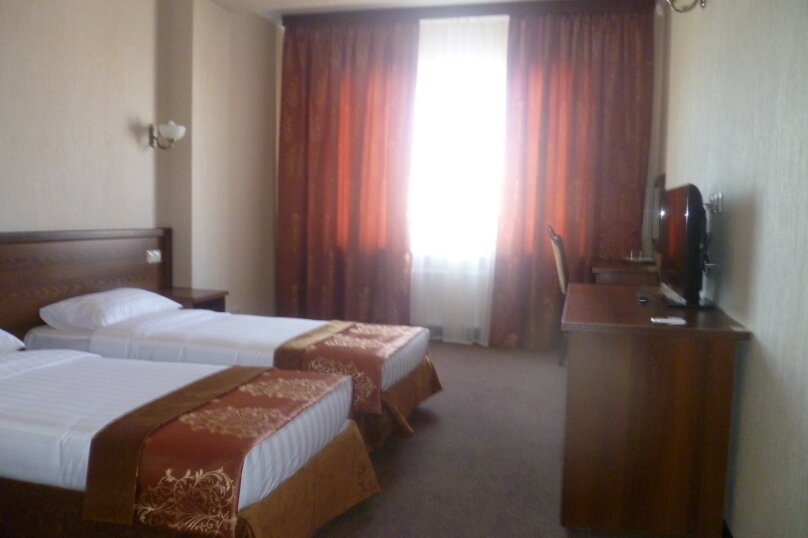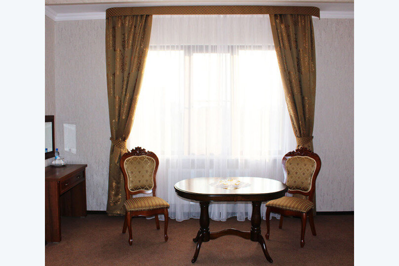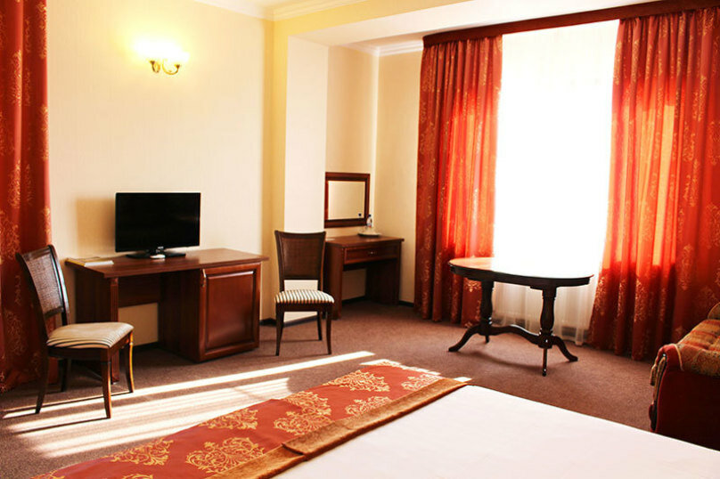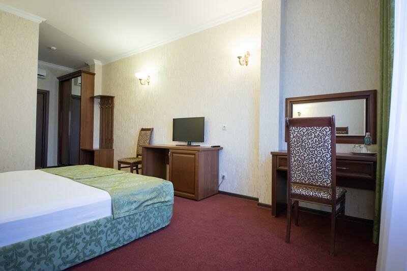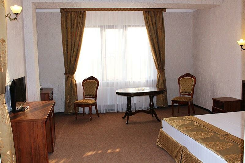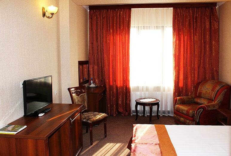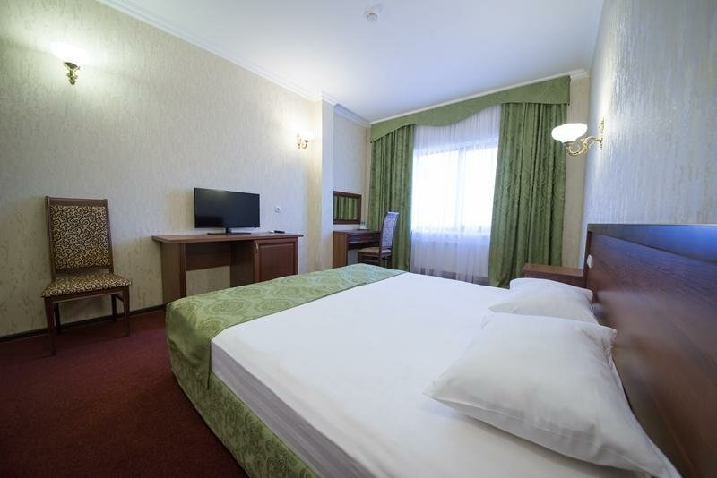 Услуги: — Номера (от 2500 до 4500 ₽/ночь) с кондиционером, Wi-Fi, телевизором, звукоизоляцией и гипоаллергенными вариантами. — Питание: кафе, ресторан, детское меню, завтрак (опционально). — Инфраструктура: тренажёрный зал, бильярд, конференц-зал, банкетный зал, купальня. — Удобства: бесплатная парковка, трансфер (платный/аэропорт), лифт, прачечная, химчистка. — Для гостей: фен, халат, тапочки, утюг, сейф, круглосуточная стойка регистрации.