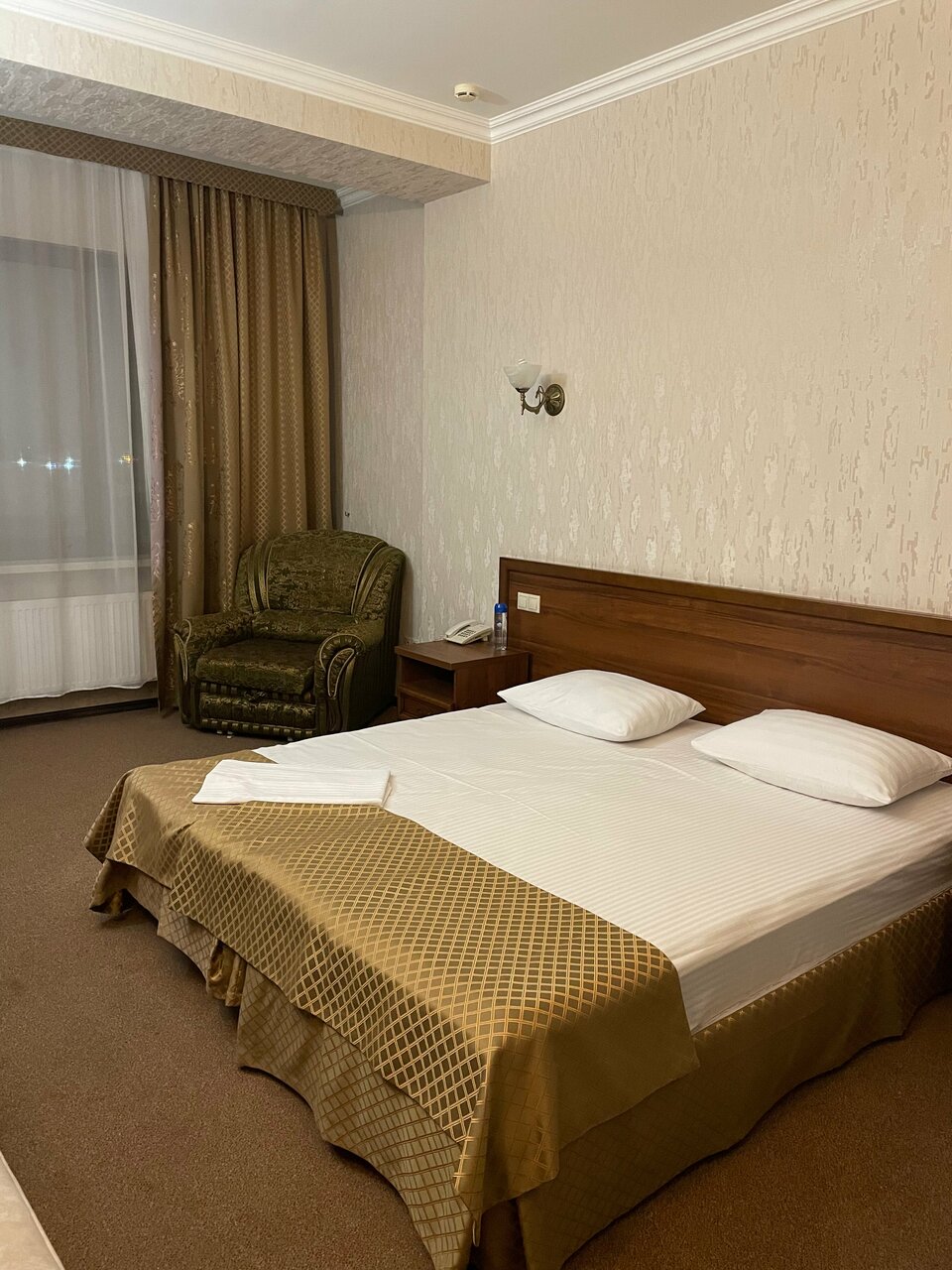 Номера чистые, есть полотенца и все для комфортного проживания. Один небольшой, но существенный минус: на завтрак подают некоторые блюда с чесноком и луком Не принюхался, попал. Случился казус с бельем, его не сменили, но это скорее просто недоразумение, вопрос быстро решили. В целом, рекомендую. Думаю, что из-за выставки цены завышены и завтрак небогатый, но все вполне неплохо. Чисто, комфортно, есть парковка.