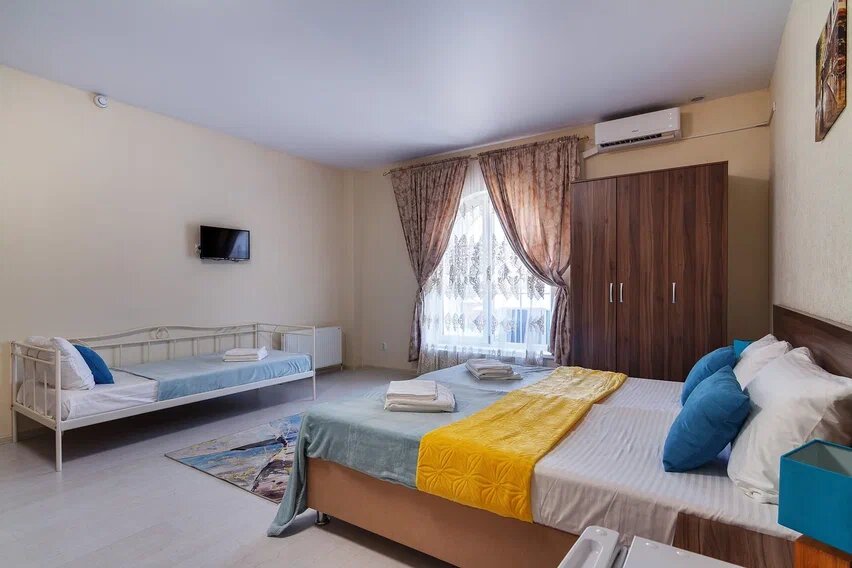 Пару дней назад снимала номер в этом гостевом доме и осталась не в восторге. Бронировала номер с двухспальной краватью, а по факту получила номер с двумя односпальными кроватями. Но и это не было последним разочарованием, на потолке был порван потолок и светильник весел на соплях, при попытке занавесить окно упал корниз вместе с зановеской. В комнате было ужасно холодно и не уютно. И все это за 2600 за сутки проживания. Не советую данный гостевой дом!