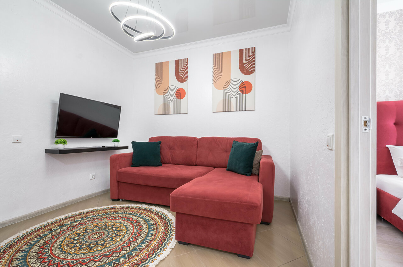Квартира находится в торговом центре, все в шаговой доступности. Квартира очень чистая, уютная, есть все.