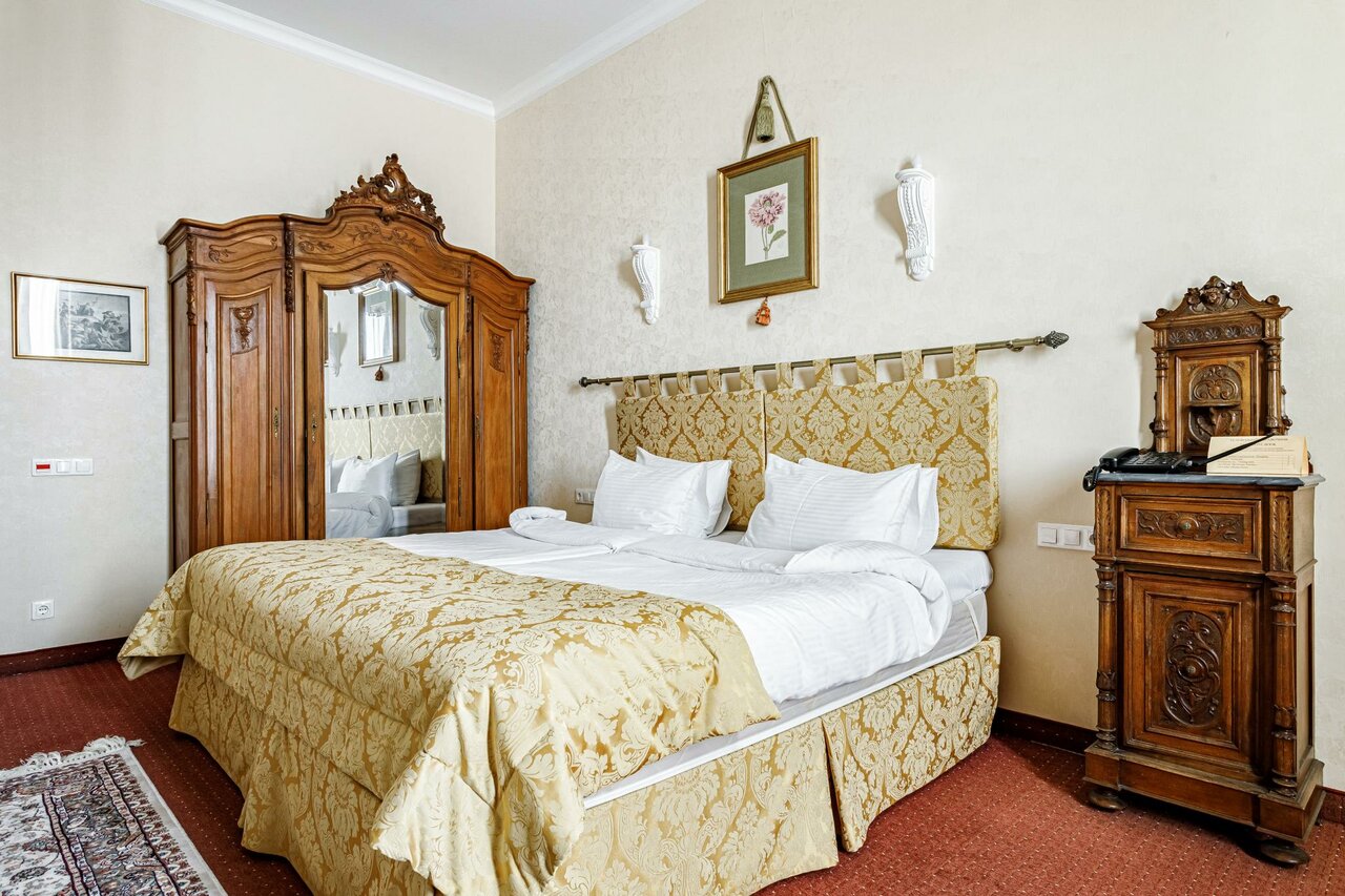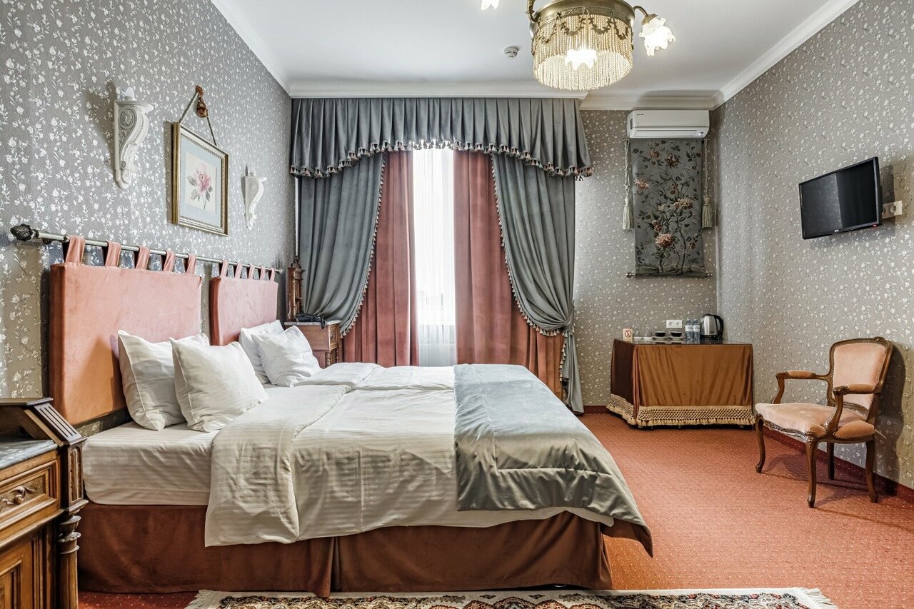 Номер с большой двуспальной кроватью и просторным санузлом. Наполнение номера — антикварная мебель. В номере имеется все необходимое для комфортного проживания: мини-бар, кондиционер, сейф.Услуги и удобства:сейф, рабочий стол, отопление, гардер