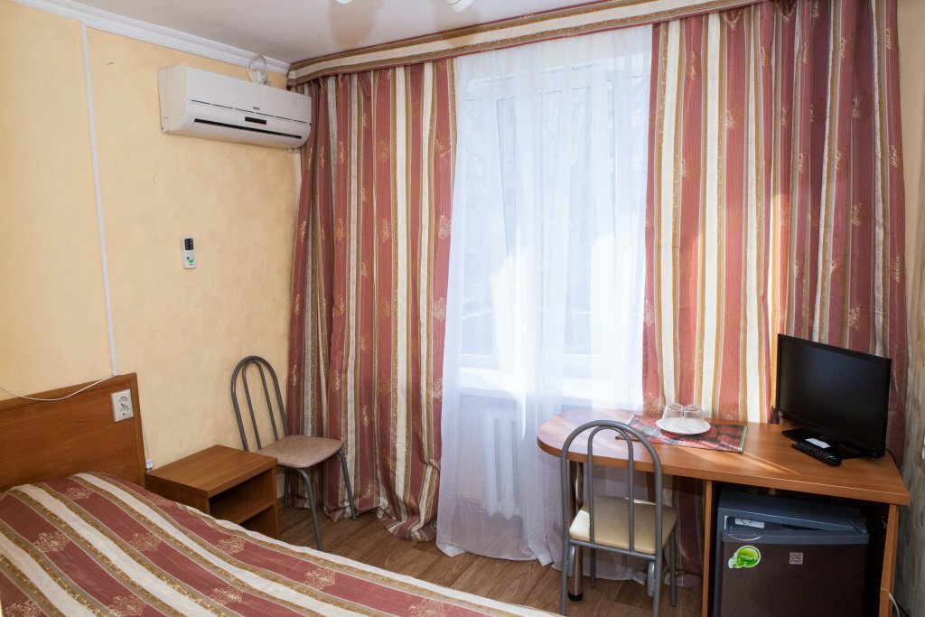 Единственный плюс центр города. Номера грязные. Тараканы ходят пешком. Занавески лет пять не стирали. Мебель старая, холодильник гудел как паровоз всю ночь. Отзыв очень отрицательеый. Больше в этот гадюшник ни нагой.