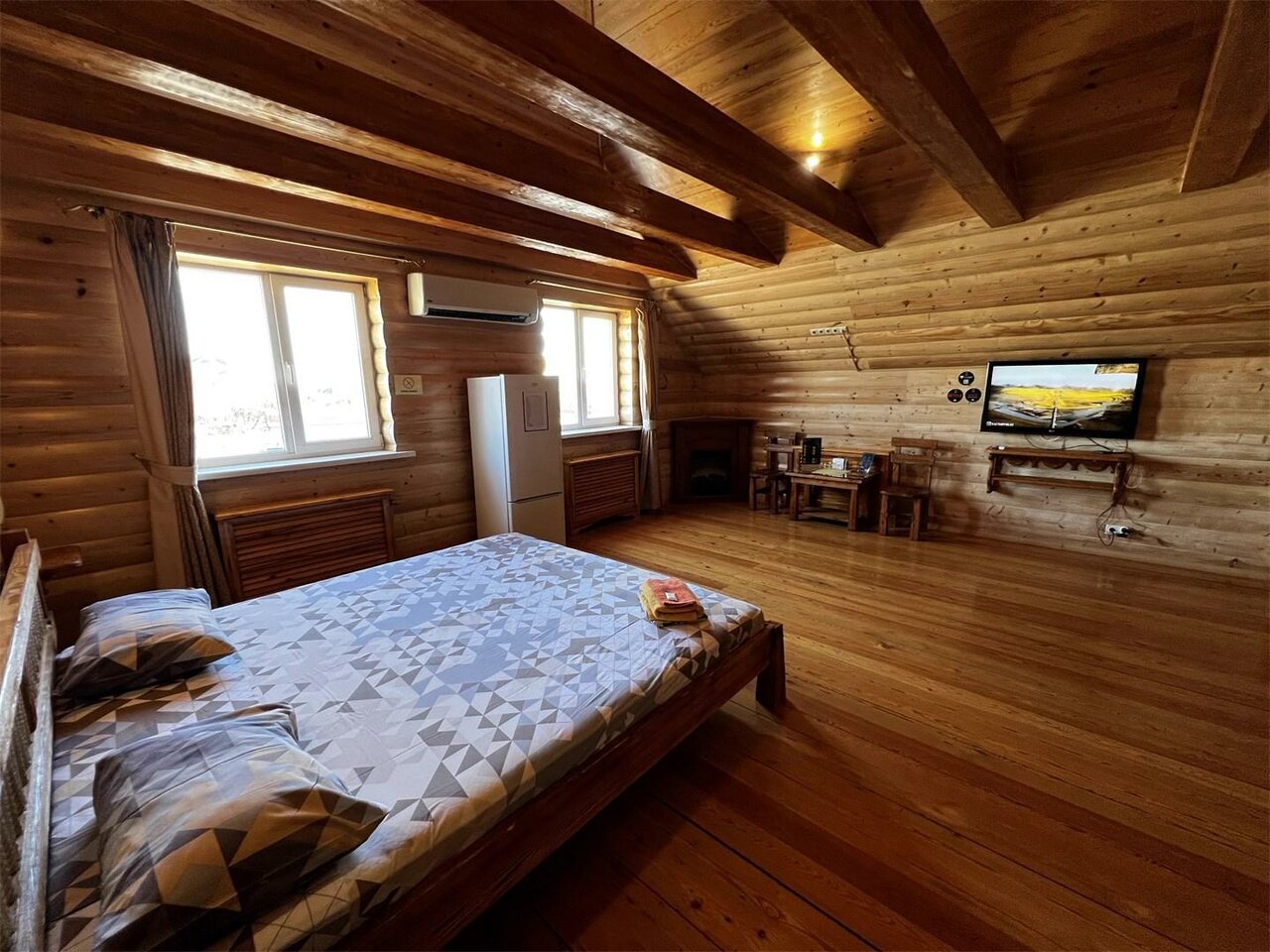 Удобства: кондиционер, Wi-Fi, телевизор, фен, холодильник, чайник. Услуги: ускоренный заезд, доставка еды, магазин, камин. Ограничения: только для гостей 18+, без детских кроватей.