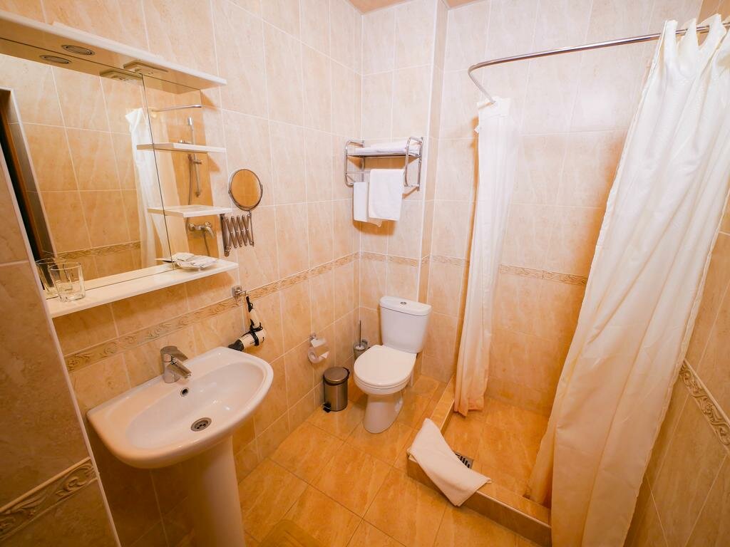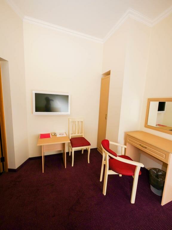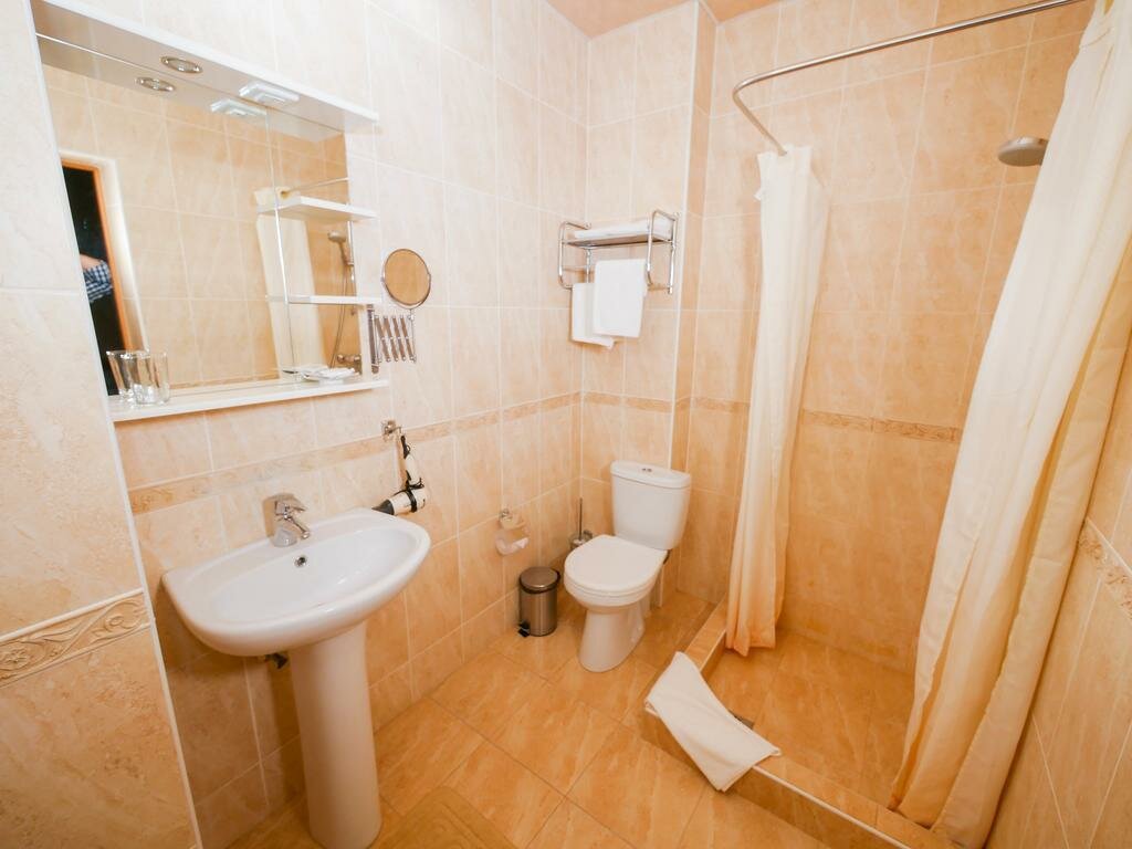 Нет лифта или пандуса, с коляской или большим чемоданом подняться тяжело. Очень холодно в номере и нет тапочек, не понимаю в чем проблема их закупить, им цена 5 рублей. Запах во всем отеле стоит не приятный и резкий, для тех кто чувствителен к запахам-просто не возможно находиться. Одеяло какое-то детское ,маленькое тонкое,подушка тоже жизнь повидавшая вся комками и тонкая. Куллер на одном этаже,гладилка на другом Из плюсом не плохое расположение и милая женщина на ресепшене. Достаточно просторная ванная комната . Не сарай конечно, но больше точно не заселюсь и никому не посоветую