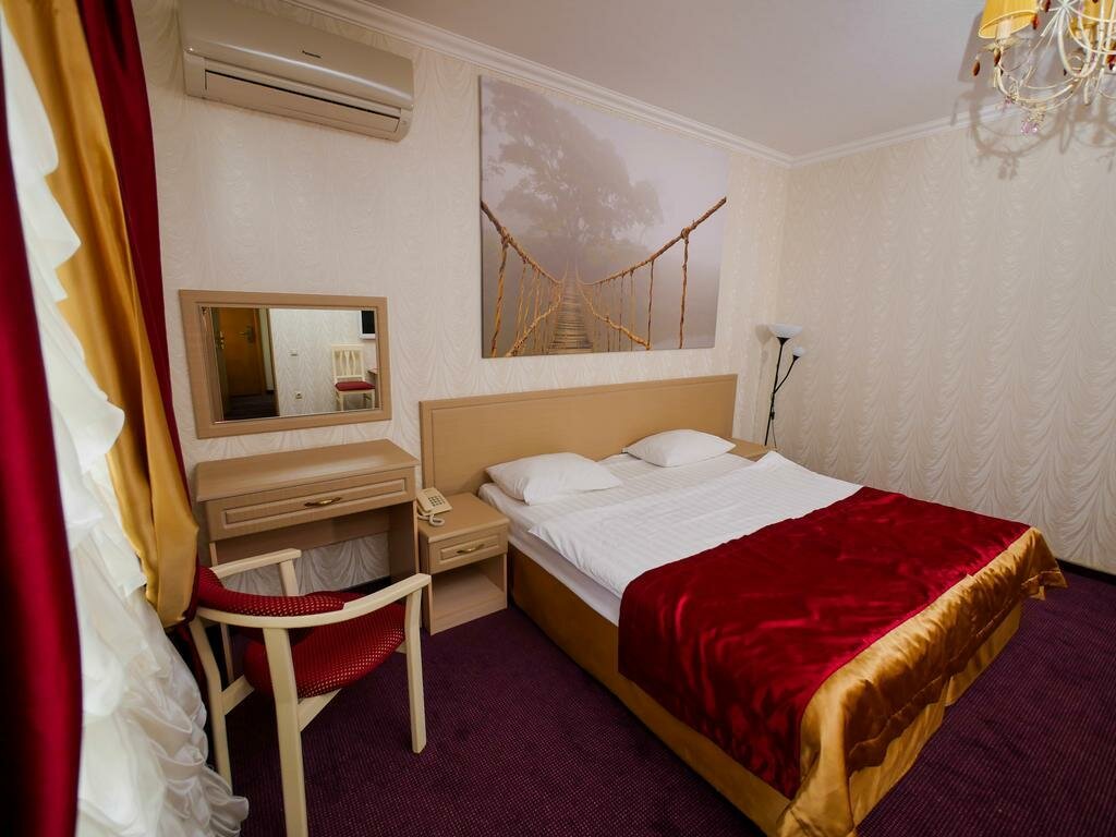 Останавливались на 1 ночь, брали номер с двумя односпальными кроватями и своим санузлом, в номере чисто, ночью тихо было. Единственное что если вы без машины, то сам отель находится не близко от вокзала, пешком долго идти. Но рядом ботанический сад (пешком минут 30), до вокзала 1,5 часа пешком, в принципе на автобусе чуть меньше будет. До улицы Красная около часа пешком. Я люблю гулять пешком) общественный транспорт находится рядом с отелем, доберётесь в любое место города.