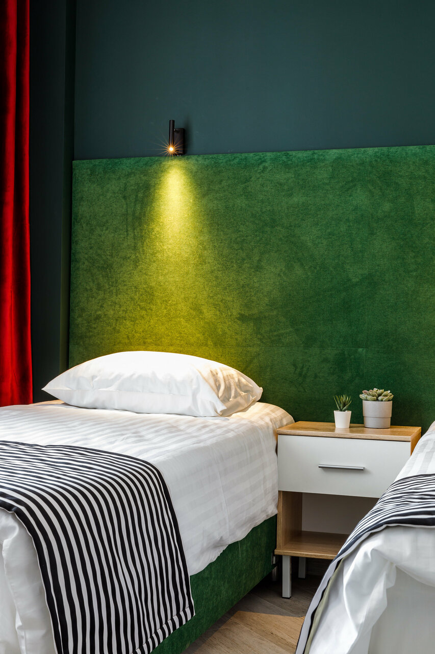 Очень чисто, есть полотенца и принадлежности для душа. Останавливались на одну ночь, проездом. Две семьи, каждая с двумя детьми. Приятно что заехали уставшими, а в коридоре куллер с водой, не надо никуда бежать. В холодильнике небольшой запас газировки и пива, выпил, оплатил при отъезде. Ценник указан, демократичный. Шторы блэкаут. Так как номера на первом этаже и окна во двор и на подъезд- это удобно. Из минусов очень мягкий матрац на кровати, но это кому-то и плюс. Диван раскладывается на одно спальное место, двум детям было не удобно.