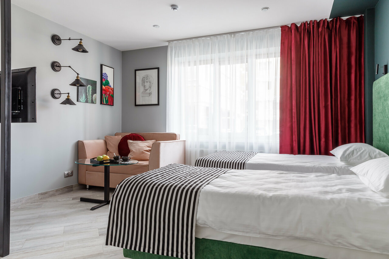 Отличное место! Чисто, уютно, в номере всё необходимое, можно воспользоваться стиральной машинкой. Прекрасное расположение — парк Галицкого рядом, но отель в жилом доме, поэтому ночью тихо))) рядом магазины на любые потребности. Всё чётко и профессионально — на связи до заезда/заселение/выезд. Спасибо огромное за сервис, обязательно вернёмся!!!