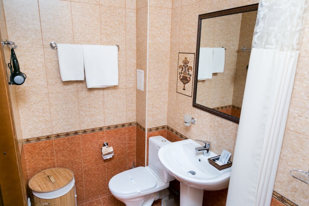 Понравилось всё. Уютная гостиница, небольшая. Номера чистые, не убитые. Всё работает. Телевизор нормальный не маленький, как почти везде. Есть стоянка перед гостиницей. Вроде есть своя столовая. В общем — понравилось