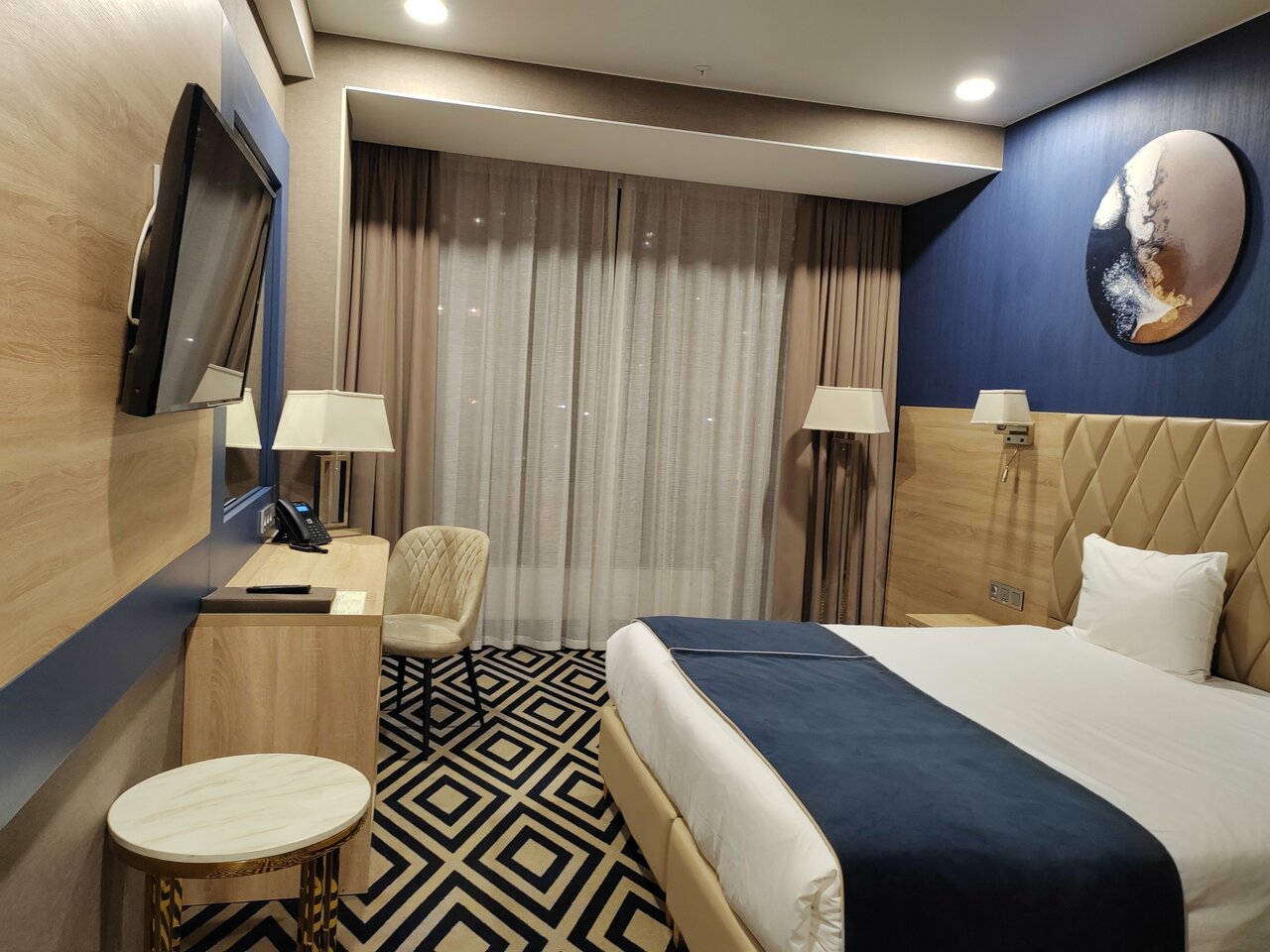 Были 30-31.01.2025. Очень приветливый и гостеприимный персонал. Быстро оформили, всё рассказали, объяснили. Номер был на 6 этаже. В номере всё очень аккуратно, стильно, всё работает. Напор воды в душевой очень хороший. Wi-Fi стабильный. Соседей не слышно, хотя гостиница была заселена на 100%. На 1 этаже ресторан, утром с 07:00-11:00 завтрак, Шведская линия, разнообразная. Бар работает круглосуточно, также можно заказать в номер. Есть Spa зона, большая и малая. Заказывали заранее за 1 час, большую на 2 часа, в ней бассейн с гидромассажем, водопадом, Хаммам, Финская сауна, чистота, порядок кругом, очень понравилось. В целом всё понравилось, минусов не обнаружено. Коллектив Сотрудников на Высоте!!! Приедем ещё не один раз. Есть одно маленькое пожелание, чтобы лифты работали чуть быстрее.