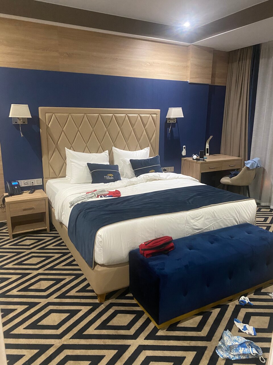 Отличный отель со всеми удобствами! Мебель свежая, номера убирают, чисто и уютно! Единственный минус на двуспальной кровати два матраса во время сна они разъезжались…
