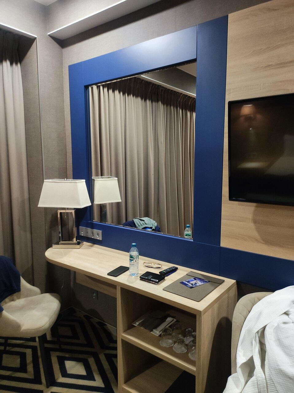Хороший отель, приятная обстановка номера и общих зон. В ванной фен, необходимые косметические принадлежности. В номере был свой утюг/гладильная доска. Завтраки без притязаний Отдельно обращаю внимание на отсутствие пандуса к ресепшену: приходится самостоятельно затаскивать по ступенькам чемодан чтобы заселиться в отель, за это минус (