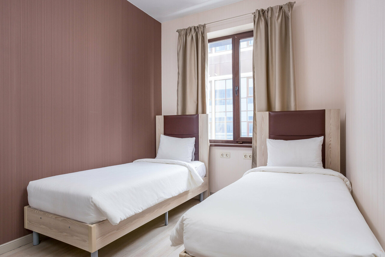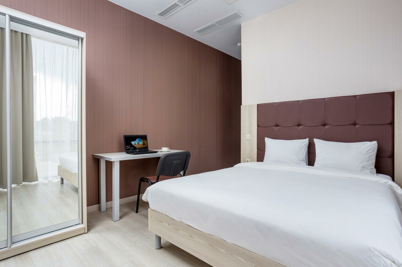 Современные номера, оформленные в стильных теплых тонах, оснащены одним диваном-кроватью, комфортной рабочей зоной. Ванная комната оснащена душем, зеркалом с подсветкой.