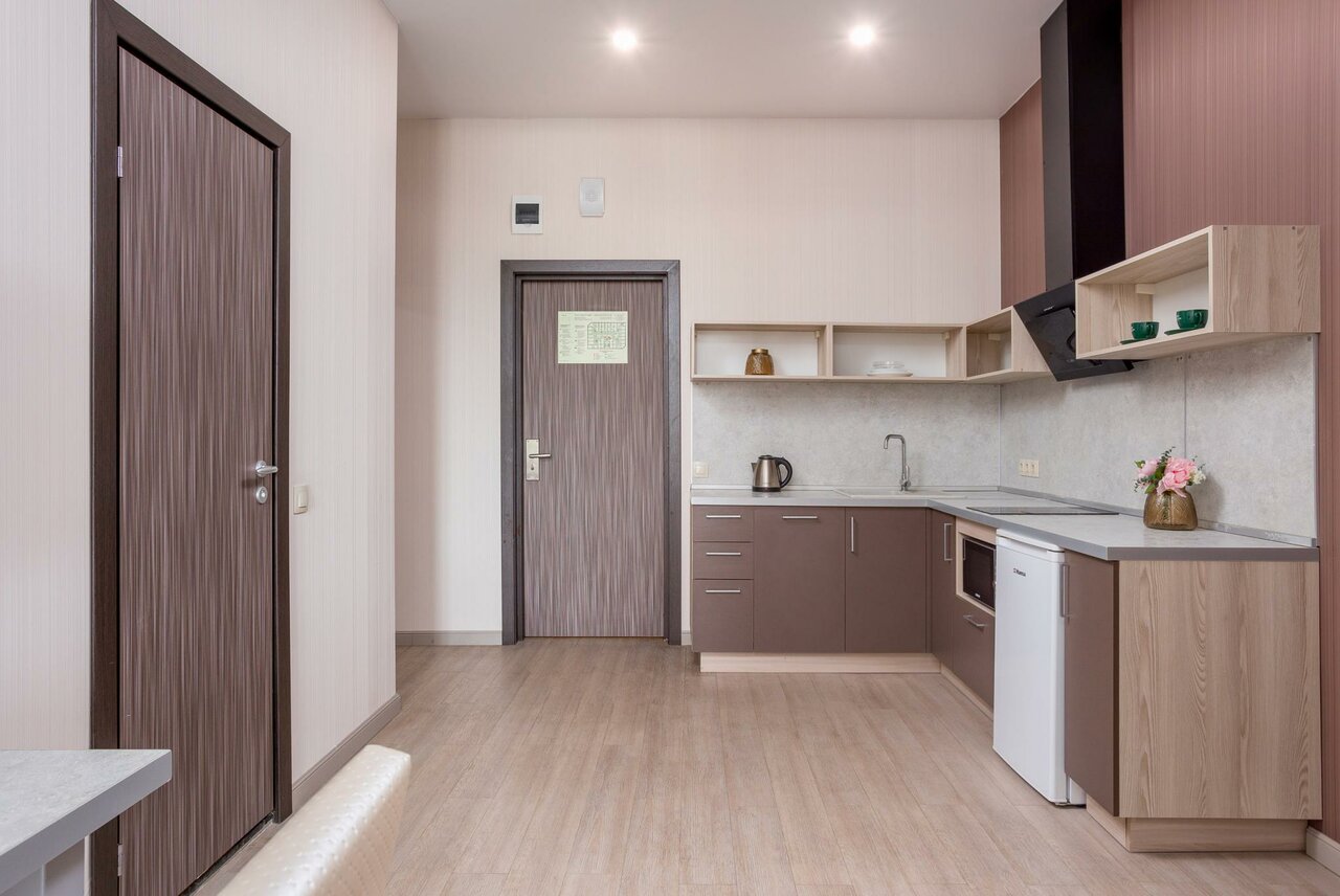 Окунитесь в атмосферу домашнего уюта в апартаментах. В апартаментах представлены: кровать King size размером 180на200, матрас бренда Askona и качественный текстиль от бренда Togas, рабочая зона кухни, посудомоечная и стиральные машины, набор для п...