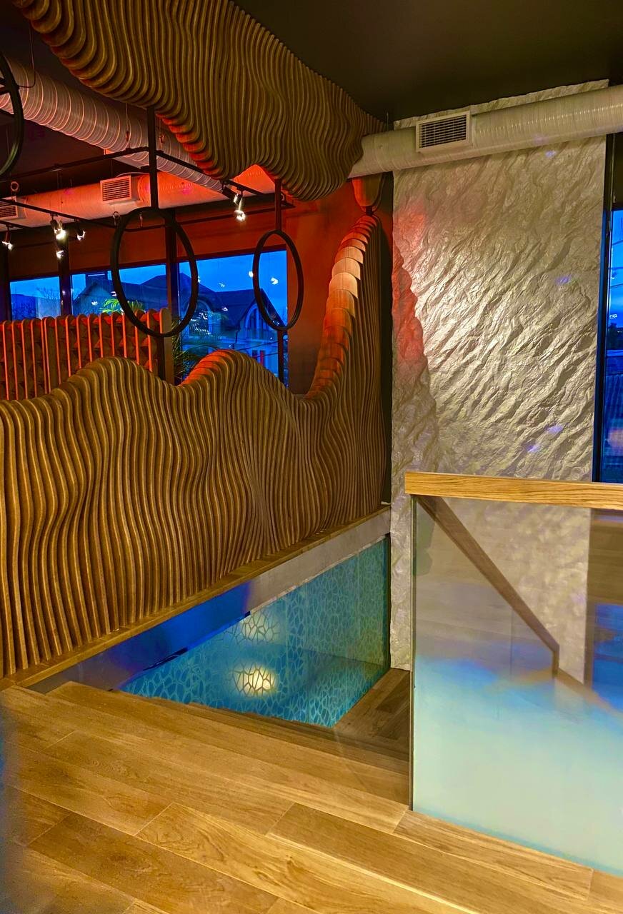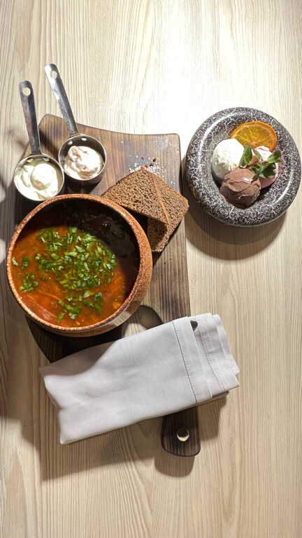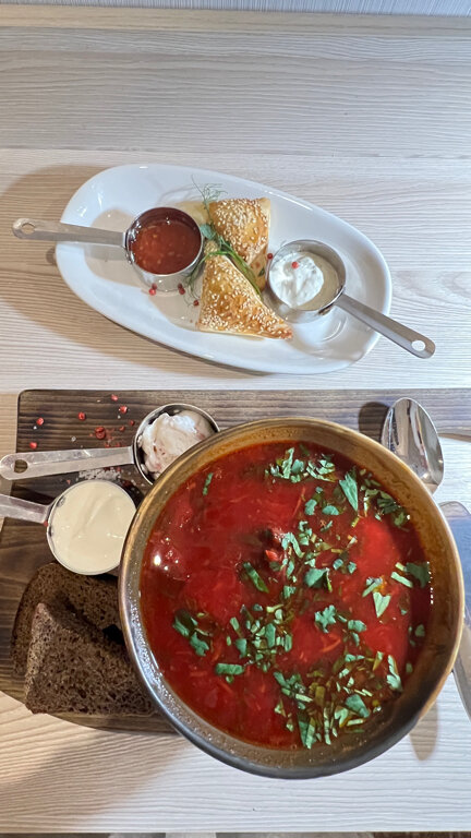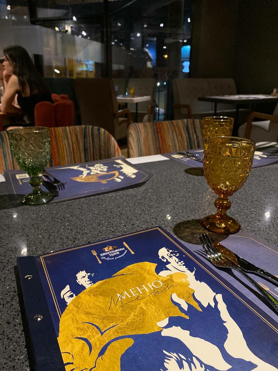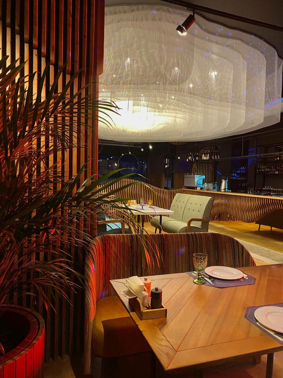 - Приятное оформление ресторана (книги, стиль).